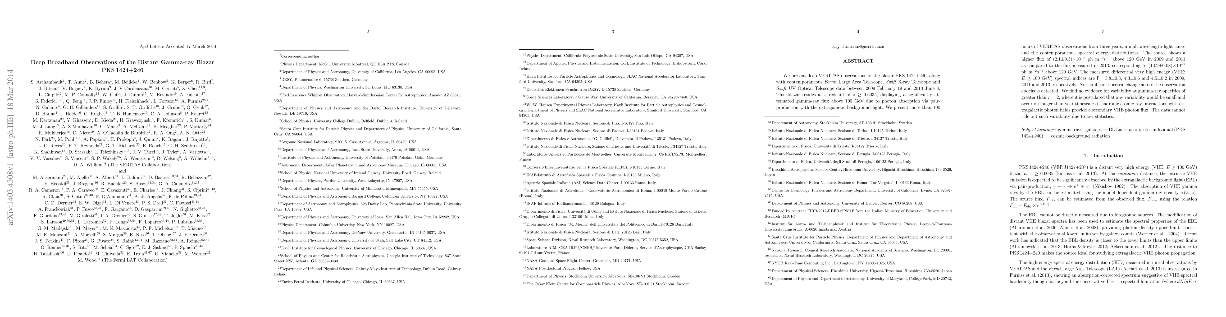 We present deep VERITAS observations of the blazar PKS 1424+240, along with contemporaneous Fermi Large Area Telescope, Swift X-ray Telescope and Swift UV Optical Telescope data between 2009 February 19 and 2013 June 8. This blazar resides at a redshift of $z\ge0.6035$, displaying a significantly attenuated gamma-ray flux above 100 GeV due to photon absorption via pair-production with the extragalactic background light. We present more than 100 hours of VERITAS observations from three years, a multiwavelength light curve and the contemporaneous spectral energy distributions. The source shows a higher flux of (2.1$\pm0.3$)$\times10^{-7}$ ph m$^{-2}$s$^{-1}$ above 120 GeV in 2009 and 2011 as compared to the flux measured in 2013, corresponding to (1.02$\pm0.08$)$\times10^{-7}$ ph m$^{-2}$s$^{-1}$ above 120 GeV. The measured differential very high energy (VHE; $E\ge100$ GeV) spectral indices are $\Gamma=$3.8$\pm$0.3, 4.3$\pm$0.6 and 4.5$\pm$0.2 in 2009, 2011 and 2013, respectively. No significant spectral change across the observation epochs is detected. We find no evidence for variability at gamma-ray opacities of greater than $\tau=2$, where it is postulated that any variability would be small and occur on longer than year timescales if hadronic cosmic-ray interactions with extragalactic photon fields provide a secondary VHE photon flux. The data cannot rule out such variability due to low statistics.