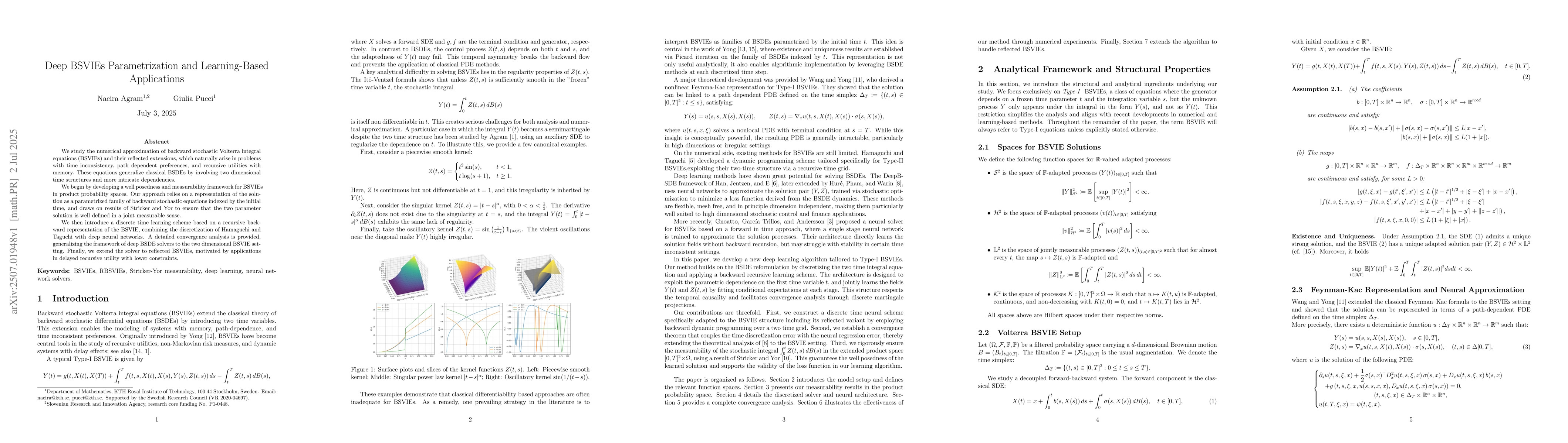We study the numerical approximation of backward stochastic Volterra integral equations (BSVIEs) and their reflected extensions, which naturally arise in problems with time inconsistency, path dependent preferences, and recursive utilities with memory. These equations generalize classical BSDEs by involving two dimensional time structures and more intricate dependencies. We begin by developing a well posedness and measurability framework for BSVIEs in product probability spaces. Our approach relies on a representation of the solution as a parametrized family of backward stochastic equations indexed by the initial time, and draws on results of Stricker and Yor to ensure that the two parameter solution is well defined in a joint measurable sense. We then introduce a discrete time learning scheme based on a recursive backward representation of the BSVIE, combining the discretization of Hamaguchi and Taguchi with deep neural networks. A detailed convergence analysis is provided, generalizing the framework of deep BSDE solvers to the two dimensional BSVIE setting. Finally, we extend the solver to reflected BSVIEs, motivated by applications in delayed recursive utility with lower constraints.