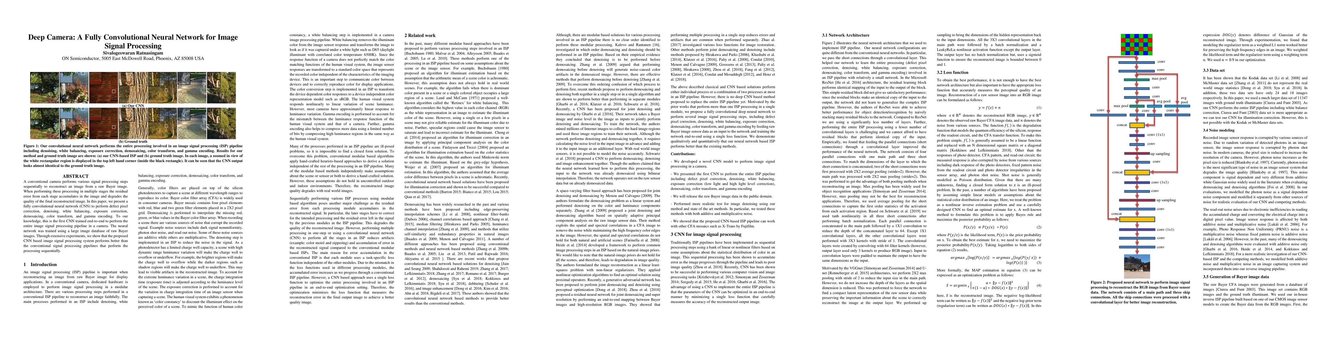This paper introduces a fully convolutional neural network (CNN) for end-to-end image signal processing in cameras, performing tasks like denoising and color correction. The proposed CNN outperforms traditional sequential processing methods by reducing cumulative error and improving image quality.