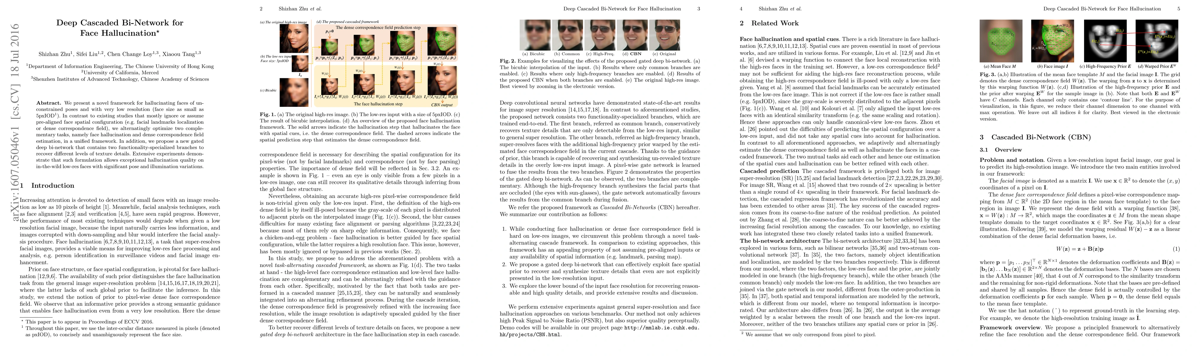 This paper introduces a Deep Cascaded Bi-Network for generating high-quality face hallucinations from very low-resolution inputs, optimizing both face hallucination and dense correspondence field estimation in a unified framework. The proposed gated bi-network with specialized branches enhances texture detail recovery, achieving superior results on unconstrained, low-resolution faces.
