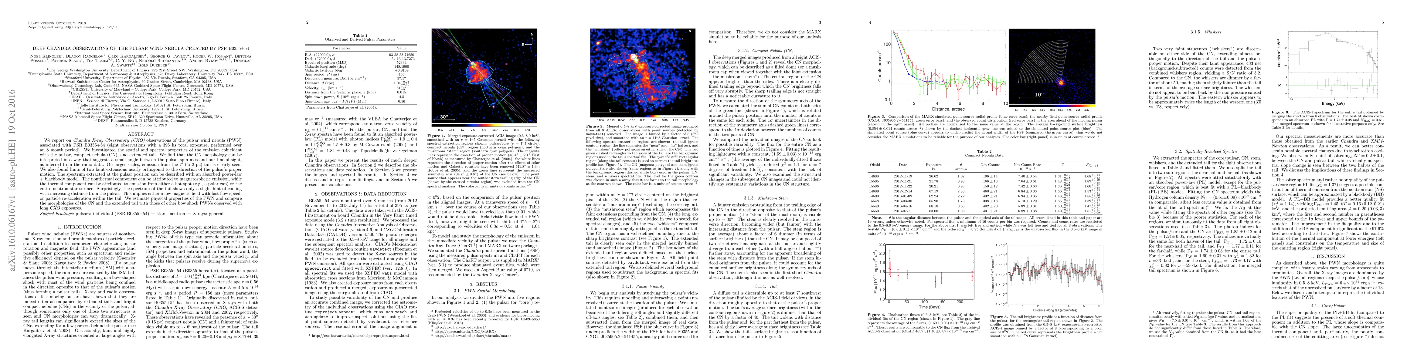 We report on Chandra X-ray Observatory (CXO) observations of the pulsar wind nebula (PWN) associated with PSR B0355+54 (eight observations with a 395 ks total exposure, performed over an 8 month period). We investigated the spatial and spectral properties of the emission coincident with the pulsar, compact nebula (CN), and extended tail. We find that the CN morphology can be interpreted in a way that suggests a small angle between the pulsar spin axis and our line-of-sight, as inferred from the radio data. On larger scales, emission from the 7' (2 pc) tail is clearly seen. We also found hints of two faint extensions nearly orthogonal to the direction of the pulsar's proper motion. The spectrum extracted at the pulsar position can be described with an absorbed power-law + blackbody model. The nonthermal component can be attributed to magnetospheric emission, while the thermal component can be attributed to emission from either a hot spot (e.g., a polar cap) or the entire neutron star surface. Surprisingly, the spectrum of the tail shows only a slight hint of cooling with increasing distance from the pulsar. This implies either a low magnetic field with fast flow speed, or particle re-acceleration within the tail. We estimate physical properties of the PWN and compare the morphologies of the CN and the extended tail with those of other bow shock PWNe observed with long CXO exposures.