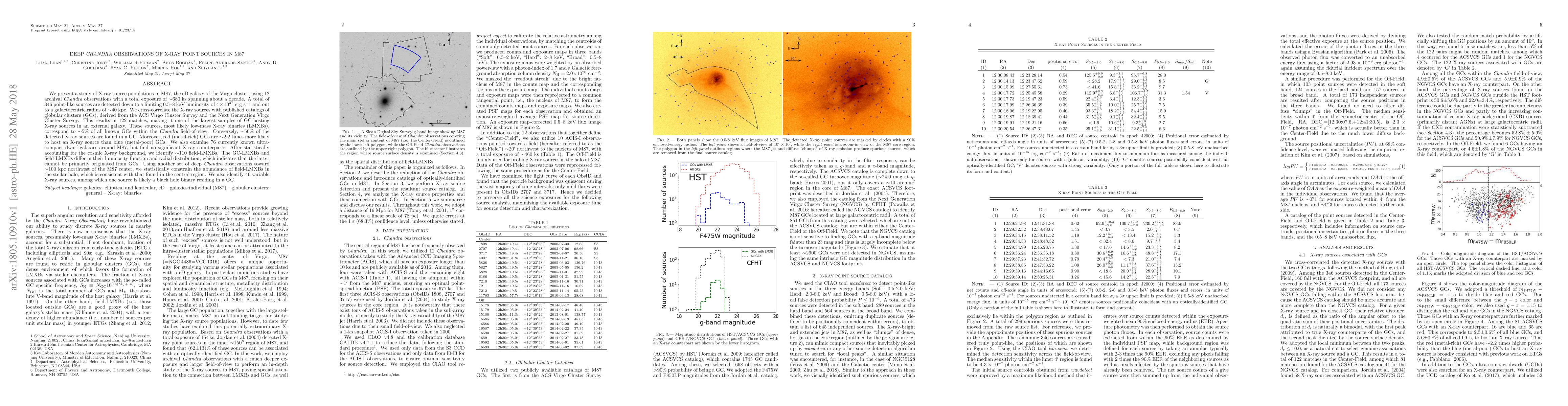 The paper presents detailed X-ray source detection, characterization, and analysis techniques using Chandra observations, along with cross-correlation methods for associating X-ray sources with globular clusters.
