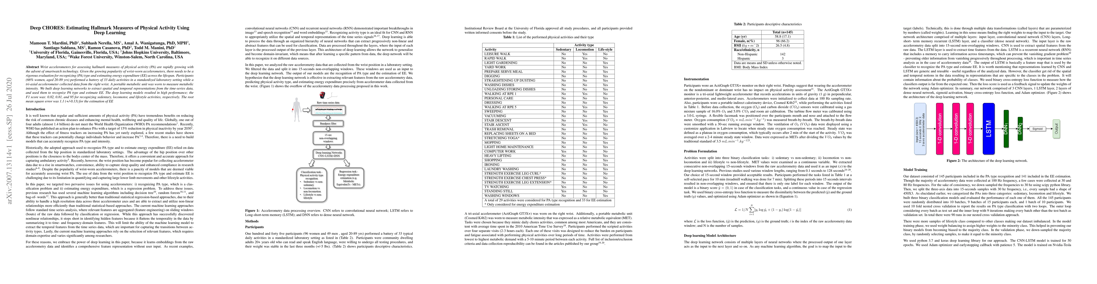 Researchers developed a deep learning model to accurately recognize types of physical activity from wrist accelerometer data and estimate energy expenditure. The model achieved high performance rates for recognizing sedentary, locomotor, and lifestyle activities.