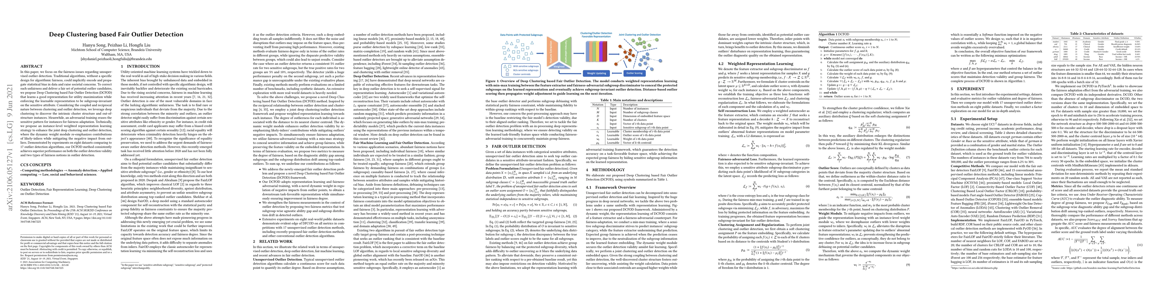 This paper proposes a Deep Clustering based Fair Outlier Detection (DCFOD) method to address fairness issues in unsupervised outlier detection, ensuring subgroup-invariant representations and superior performance in both outlier detection and fairness metrics. The method leverages deep clustering and adversarial training to enhance representation learning and mitigate bias.