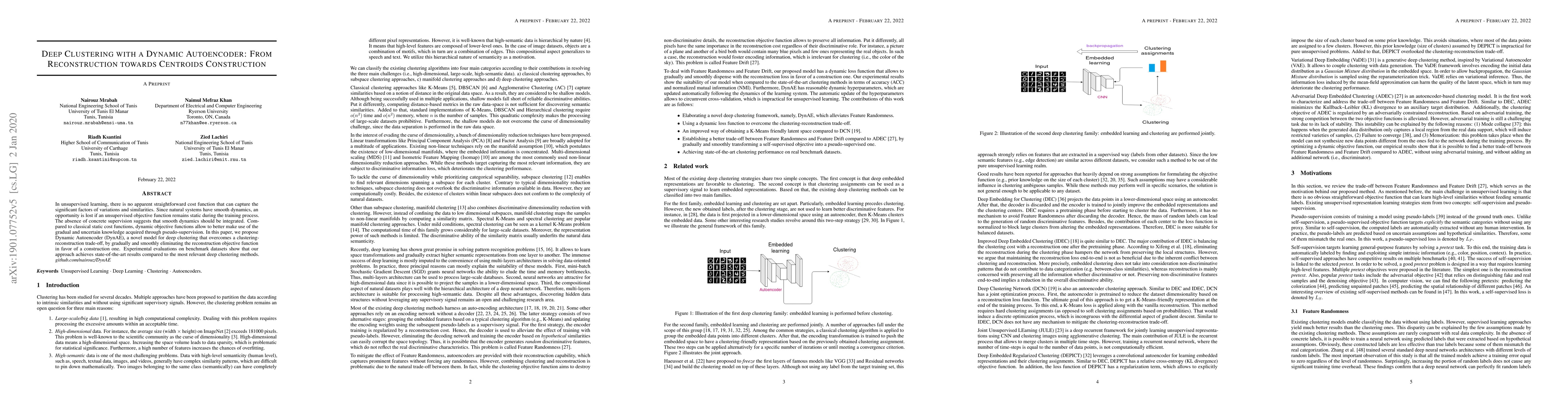 In unsupervised learning, there is no apparent straightforward cost function that can capture the significant factors of variations and similarities. Since natural systems have smooth dynamics, an opportunity is lost if an unsupervised objective function remains static during the training process. The absence of concrete supervision suggests that smooth dynamics should be integrated. Compared to classical static cost functions, dynamic objective functions allow to better make use of the gradual and uncertain knowledge acquired through pseudo-supervision. In this paper, we propose Dynamic Autoencoder (DynAE), a novel model for deep clustering that overcomes a clustering-reconstruction trade-off, by gradually and smoothly eliminating the reconstruction objective function in favor of a construction one. Experimental evaluations on benchmark datasets show that our approach achieves state-of-the-art results compared to the most relevant deep clustering methods.