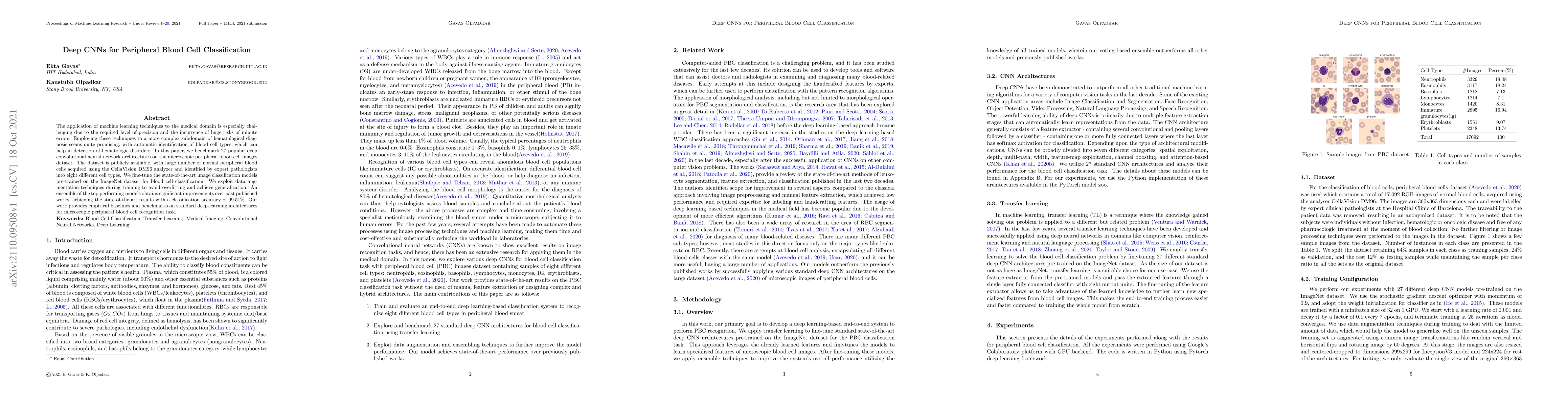 Researchers developed a deep learning model that can accurately classify peripheral blood cells with 99.51% accuracy, improving upon previous results in hematological diagnosis. The study benchmarks 27 popular architectures on a public dataset to establish empirical baselines for microscopic blood cell recognition tasks.