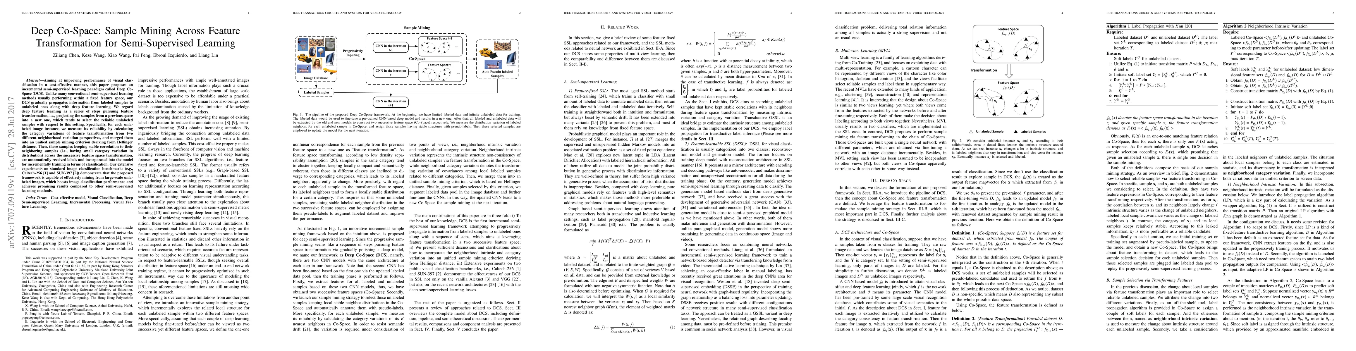 Aiming at improving performance of visual classification in a cost-effective manner, this paper proposes an incremental semi-supervised learning paradigm called Deep Co-Space (DCS). Unlike many conventional semi-supervised learning methods usually performing within a fixed feature space, our DCS gradually propagates information from labeled samples to unlabeled ones along with deep feature learning. We regard deep feature learning as a series of steps pursuing feature transformation, i.e., projecting the samples from a previous space into a new one, which tends to select the reliable unlabeled samples with respect to this setting. Specifically, for each unlabeled image instance, we measure its reliability by calculating the category variations of feature transformation from two different neighborhood variation perspectives, and merged them into an unified sample mining criterion deriving from Hellinger distance. Then, those samples keeping stable correlation to their neighboring samples (i.e., having small category variation in distribution) across the successive feature space transformation, are automatically received labels and incorporated into the model for incrementally training in terms of classification. Our extensive experiments on standard image classification benchmarks (e.g., Caltech-256 and SUN-397) demonstrate that the proposed framework is capable of effectively mining from large-scale unlabeled images, which boosts image classification performance and achieves promising results compared to other semi-supervised learning methods.