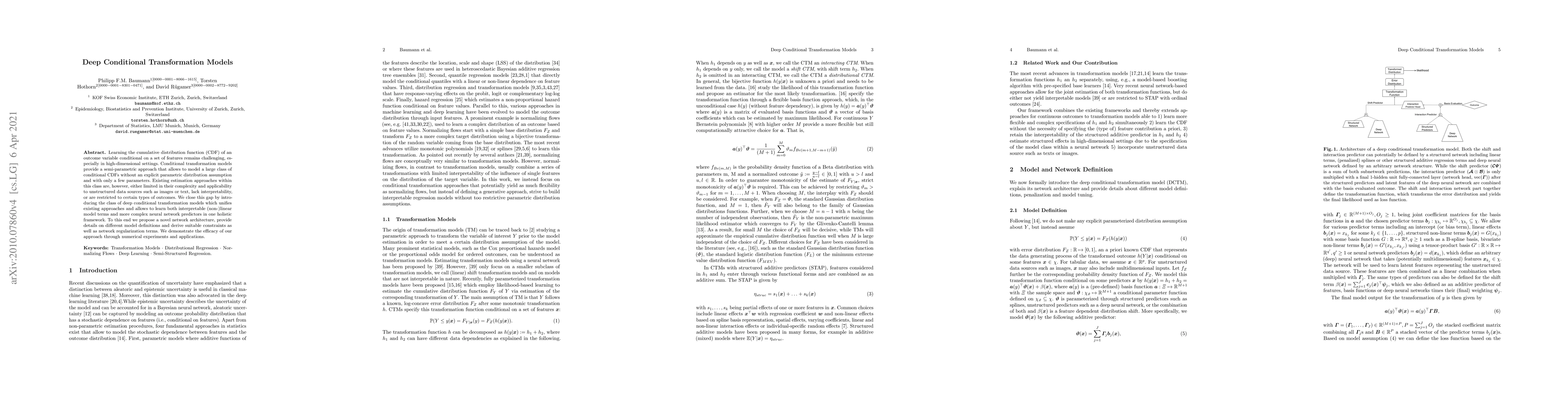 This paper introduces deep conditional transformation models, a semi-parametric approach that combines interpretable model terms with complex neural networks to learn conditional cumulative distribution functions in high-dimensional settings. The proposed network architecture and regularization terms enhance applicability and interpretability, demonstrated through numerical experiments.
