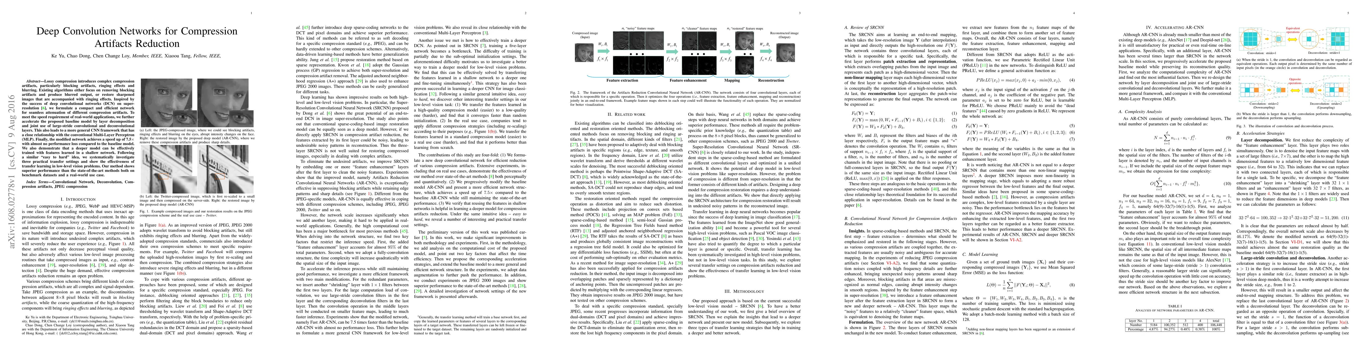 This paper proposes a deep convolutional network for reducing various compression artifacts, achieving a 7.5x speedup through model optimization while maintaining performance. It also explores transfer learning for practical applications, demonstrating superior performance compared to existing methods.