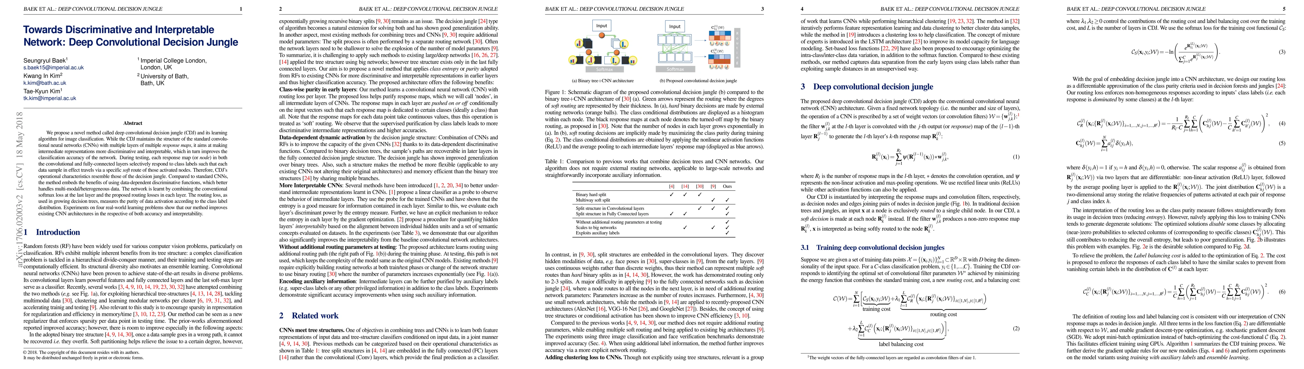 The research introduces Deep Convolutional Decision Jungle (CDJ), a novel image classification method. CDJ, built on CNN architecture, learns features automatically, uses soft route data transmission, and combines softmax and entropy losses for training. It outperforms existing methods on multiple benchmarks, offering improved classification, especially with auxiliary data labels.