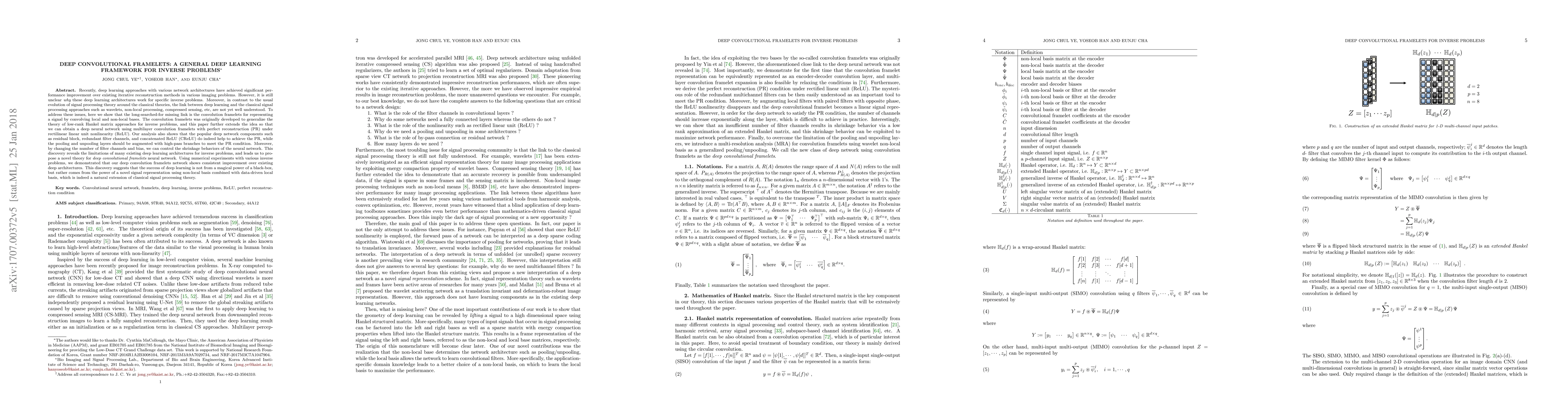 This paper proposes deep convolutional framelets as a novel framework for solving inverse problems, demonstrating that their success stems from a combination of non-local and local signal representations. The deep convolutional framelets network shows consistent performance improvements over existing deep architectures, suggesting that its effectiveness is grounded in classical signal processing theory.