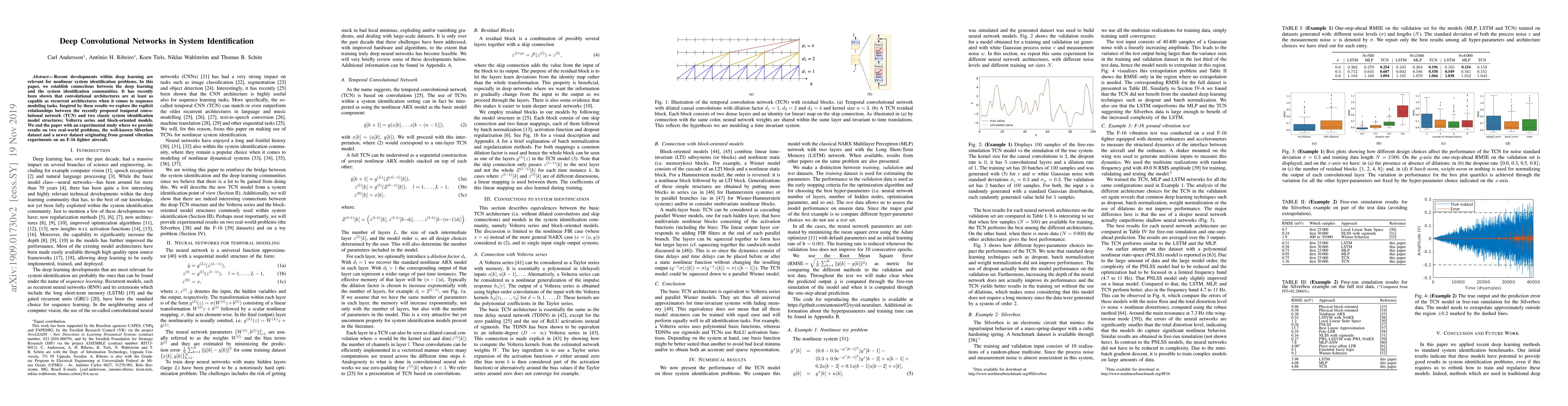 This paper explores the application of deep convolutional networks, specifically temporal convolutional networks (TCNs), to nonlinear system identification, drawing connections between deep learning and system identification. Experimental results on the Silverbox dataset and F-16 fighter aircraft vibration data demonstrate the effectiveness of TCNs in these contexts.