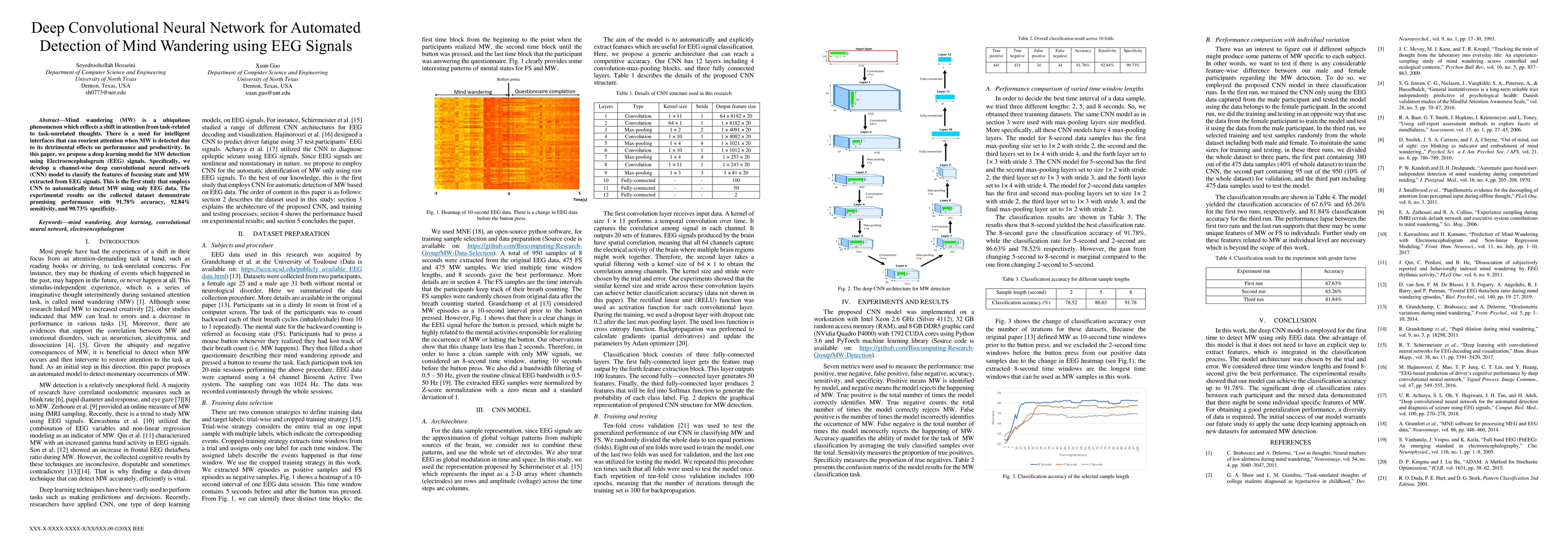 The paper presents a deep CNN model for MW detection using EEG signals, which automatically extracts relevant features without an explicit feature extraction step.