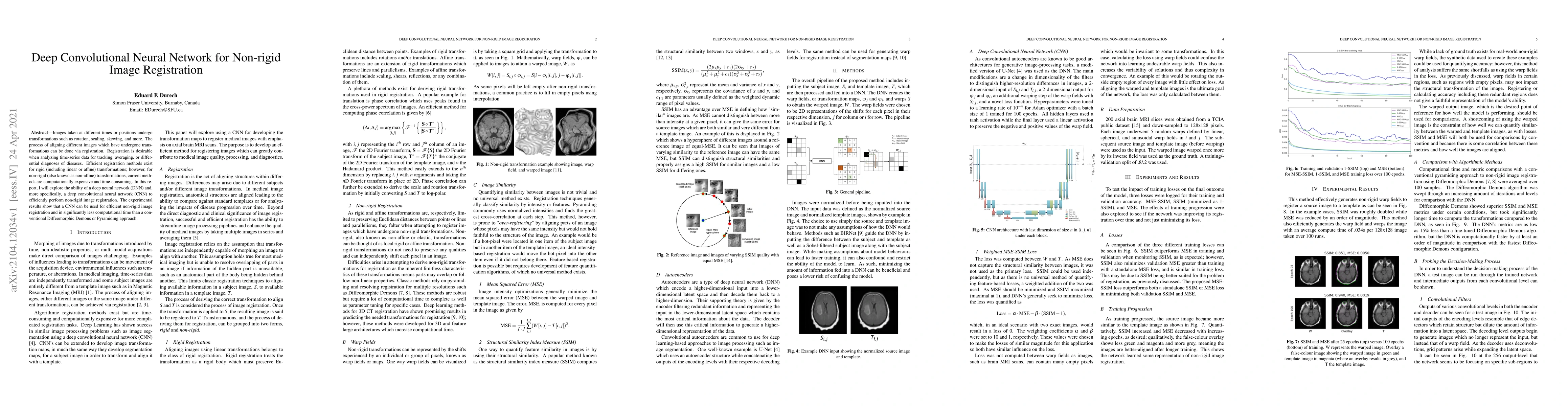 This paper investigates the use of a deep convolutional neural network (CNN) for efficient non-rigid image registration, demonstrating its capability to perform the task in significantly less time compared to conventional methods like Diffeomorphic Demons or Pyramiding. Experimental results confirm the CNN's efficiency in handling complex transformations.
