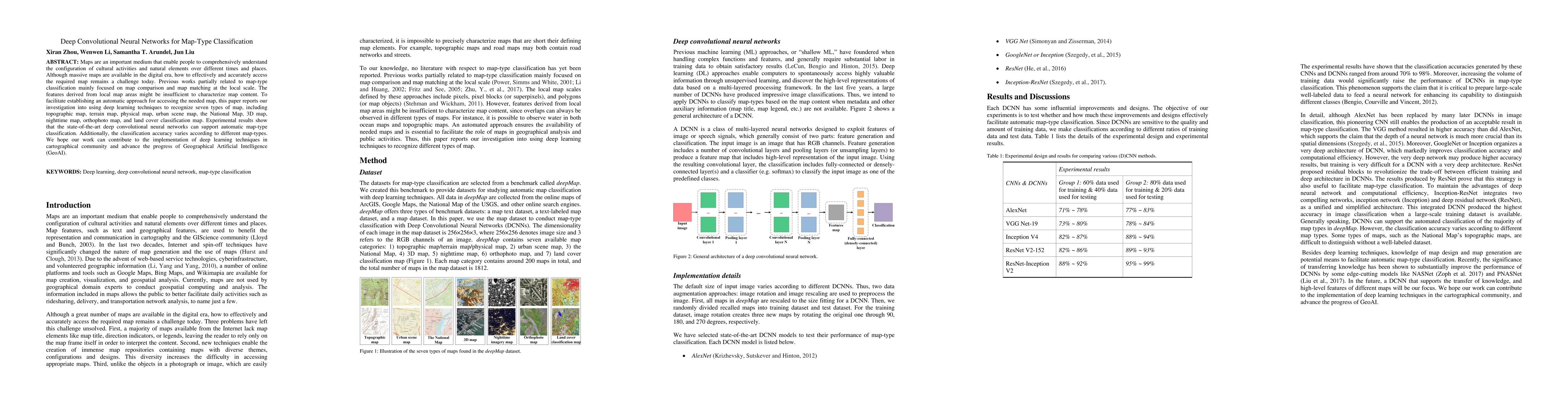 A deep learning approach helps automatically classify seven types of maps, including topographic and urban scene maps, with varying accuracy rates.