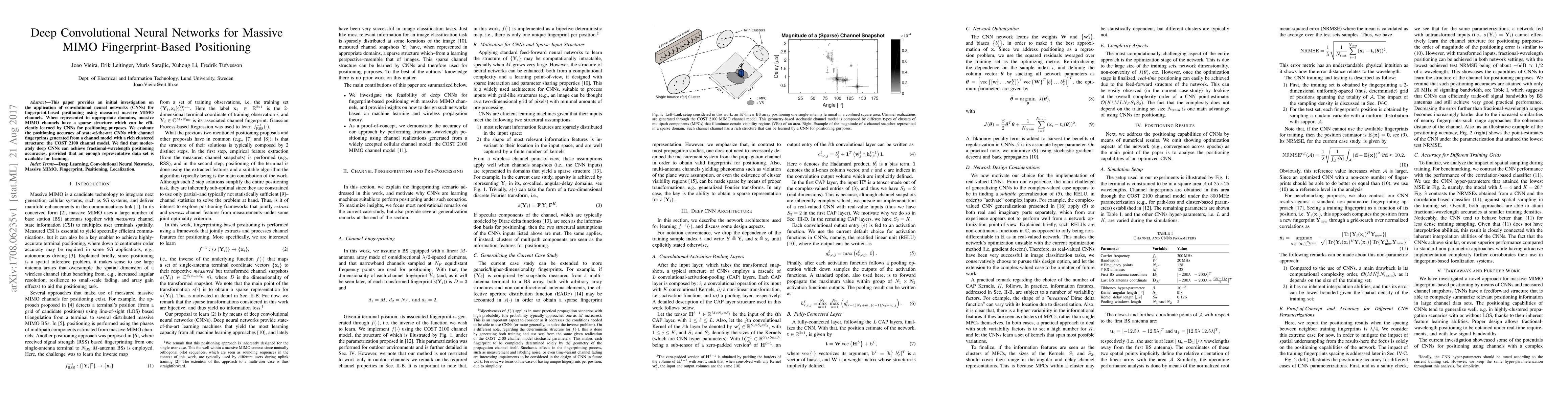 This paper explores convolutional neural networks (CNNs) for fingerprint-based positioning using massive MIMO channels, demonstrating that deep CNNs can achieve high positioning accuracy when trained on sufficiently representative data. The study evaluates CNNs against the COST 2100 channel model, showing fractional-wavelength accuracy.