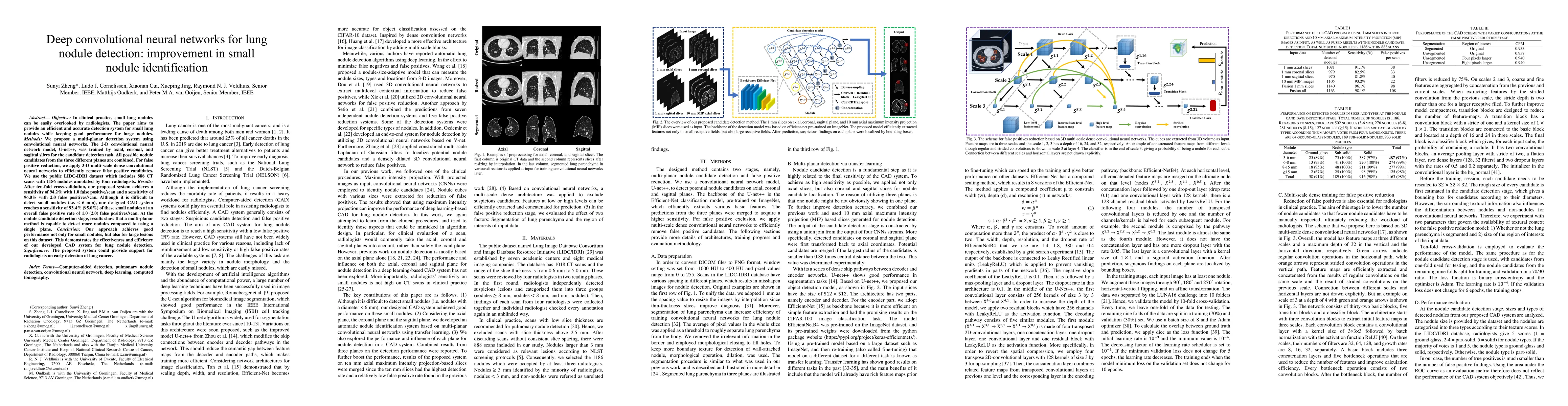 This paper proposes a multi-planar convolutional neural network system for lung nodule detection, achieving high sensitivity for both small and large nodules. The method uses 2-D U-net++ and 3-D multi-scale dense networks to detect and validate candidates, demonstrating improved sensitivity for small nodules and fewer false positives on the LIDC-IDRI dataset.