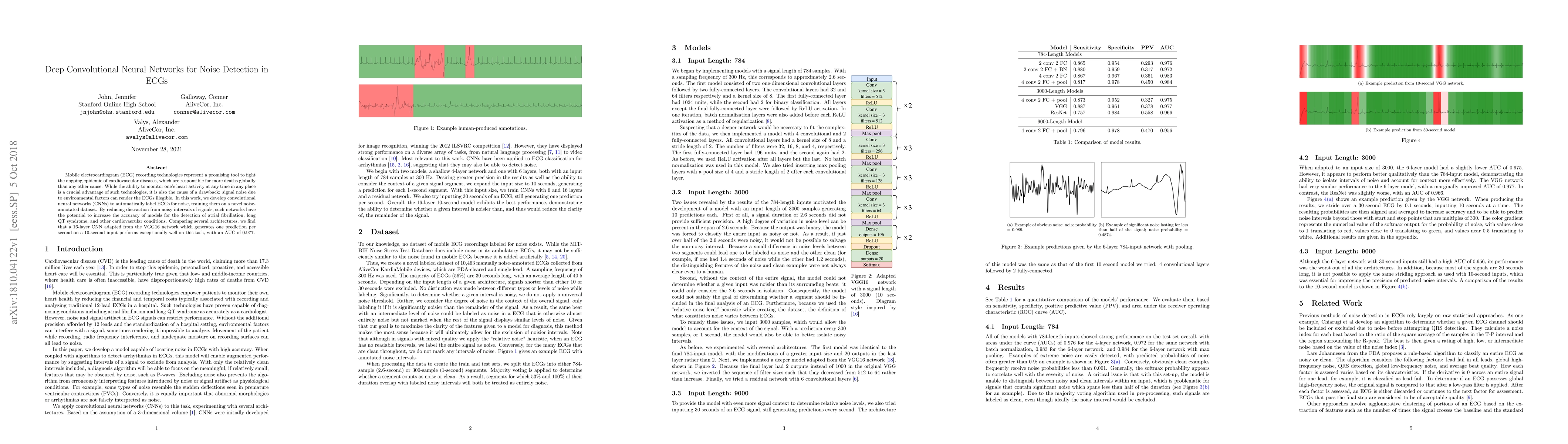Mobile electrocardiogram (ECG) recording technologies represent a promising tool to fight the ongoing epidemic of cardiovascular diseases, which are responsible for more deaths globally than any other cause. While the ability to monitor one's heart activity at any time in any place is a crucial advantage of such technologies, it is also the cause of a drawback: signal noise due to environmental factors can render the ECGs illegible. In this work, we develop convolutional neural networks (CNNs) to automatically label ECGs for noise, training them on a novel noise-annotated dataset. By reducing distraction from noisy intervals of signals, such networks have the potential to increase the accuracy of models for the detection of atrial fibrillation, long QT syndrome, and other cardiovascular conditions. Comparing several architectures, we find that a 16-layer CNN adapted from the VGG16 network which generates one prediction per second on a 10-second input performs exceptionally well on this task, with an AUC of 0.977.