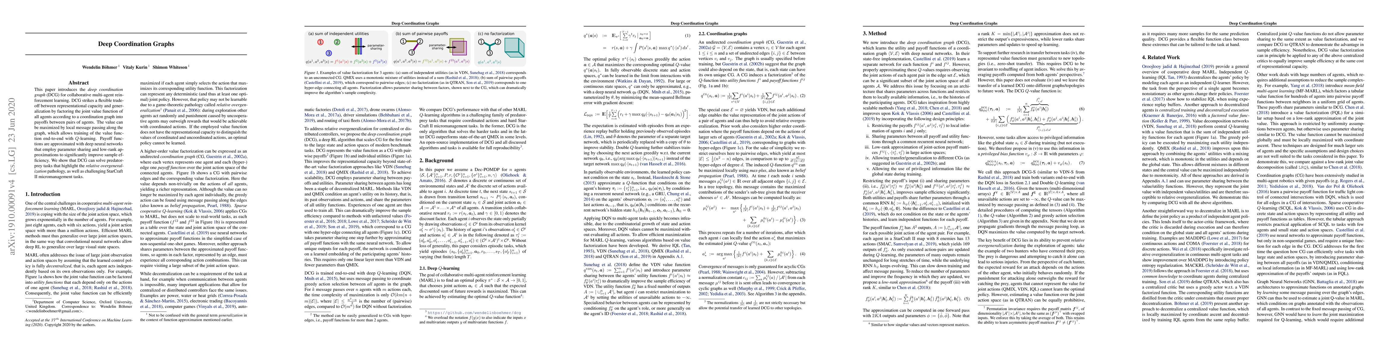 Deep Coordination Graphs (DCG) is a new approach to collaborative multi-agent reinforcement learning that balances representational capacity and generalization through a coordination graph. It outperforms existing methods on challenging tasks such as predator-prey games and StarCraft II micromanagement.