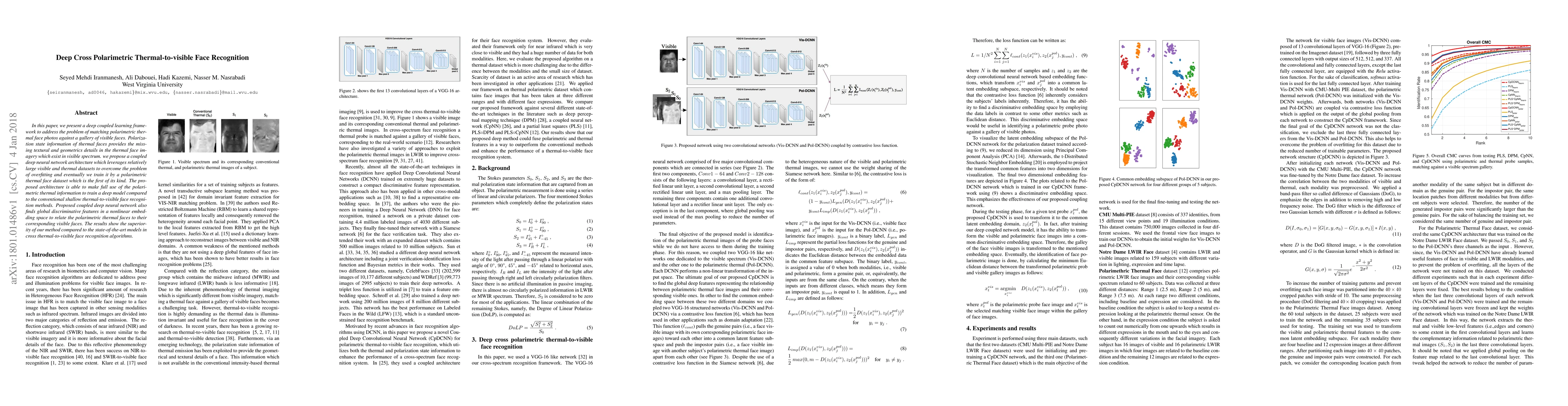 This paper introduces a deep coupled learning framework for matching polarimetric thermal face photos against visible face galleries, leveraging polarization state information to enhance thermal imagery. The proposed deep neural network architecture outperforms conventional methods by utilizing both large visible and thermal datasets, achieving superior cross-modal recognition results.