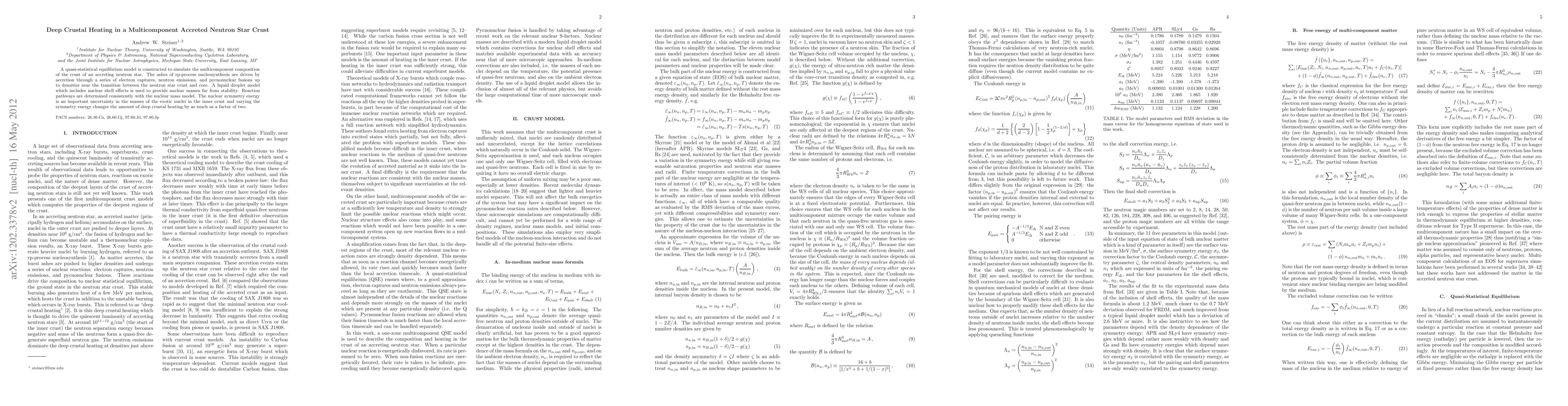 This paper models the deep crustal heating in an accreting neutron star using a quasi-statistical equilibrium approach, focusing on the multicomponent composition and the effects of rp-process nucleosynthesis. The study highlights the significant impact of nuclear symmetry energy on the heating, which can vary by a factor of two.
