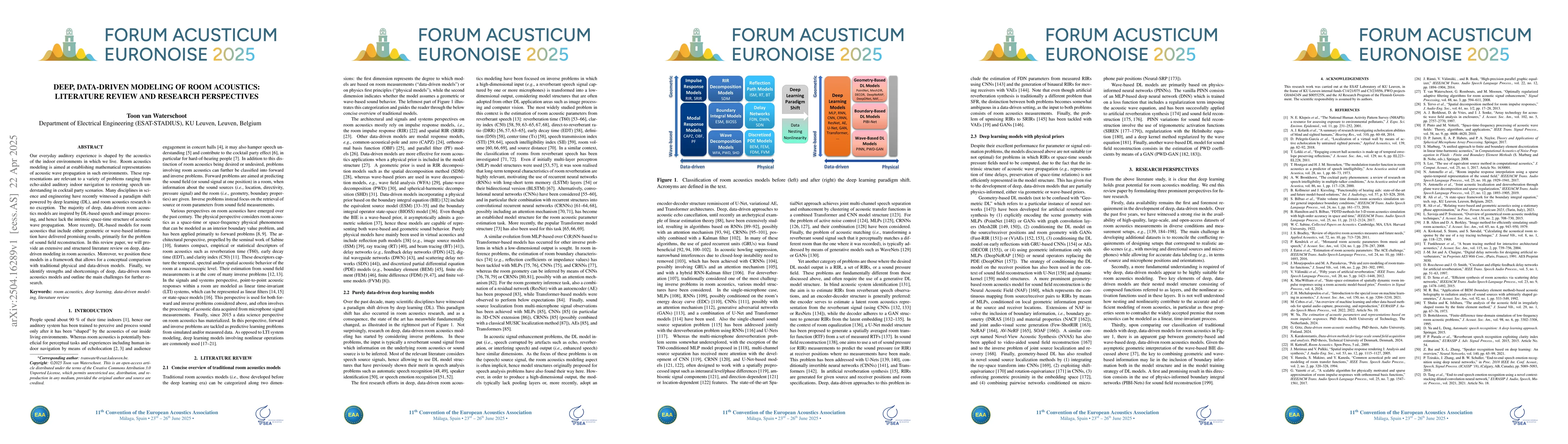 The paper presents a comprehensive literature review and analysis of deep, data-driven modeling in room acoustics, comparing these models with traditional physical and data-driven models.