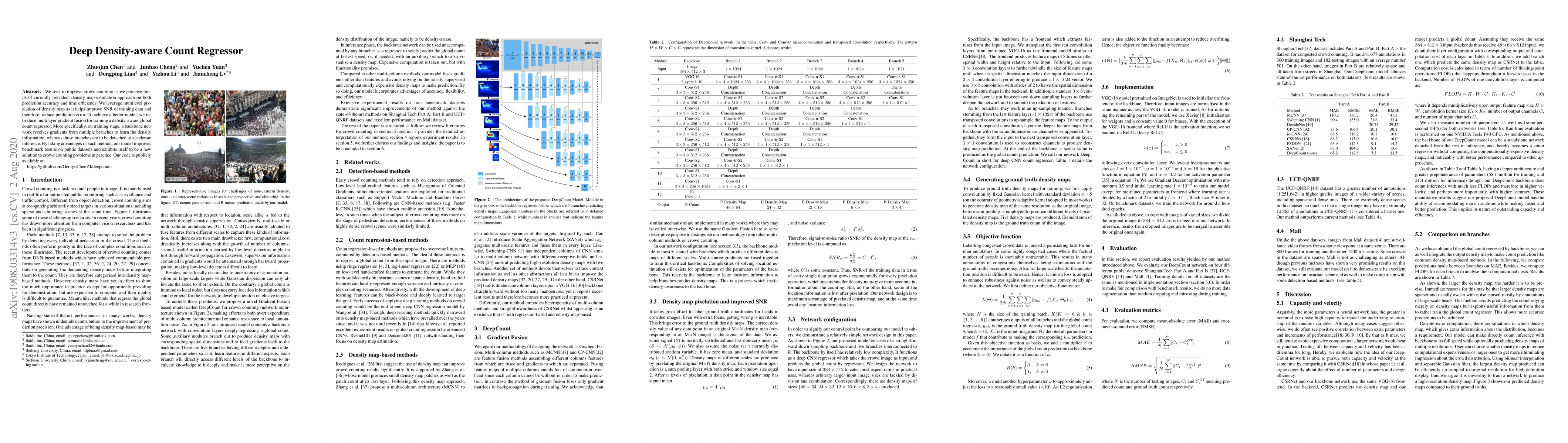 We seek to improve crowd counting as we perceive limits of currently prevalent density map estimation approach on both prediction accuracy and time efficiency. We leverage multilevel pixelation of density map as it helps improve SNR of training data and therefore, reduce prediction error. To achieve a better model, we introduce multilayer gradient fusion for training a density-aware global count regressor. More specifically, on training stage, a backbone network receives gradients from multiple branches to learn the density information, whereas those branches are to be detached to accelerate inference. By taking advantages of such method, our model improves benchmark results on public datasets and exhibits itself to be a new solution to crowd counting problems in practice.