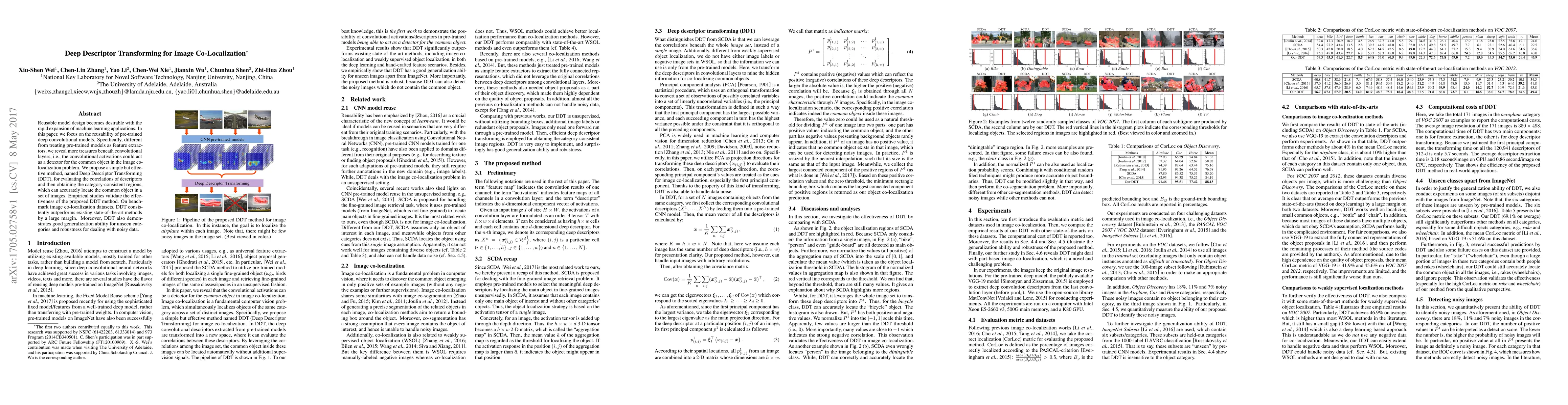 This paper proposes Deep Descriptor Transforming (DDT), a method to repurpose pre-trained deep convolutional models for image co-localization by leveraging convolutional activations as detectors. Empirical studies show that DDT outperforms existing methods and demonstrates good generalization and robustness.