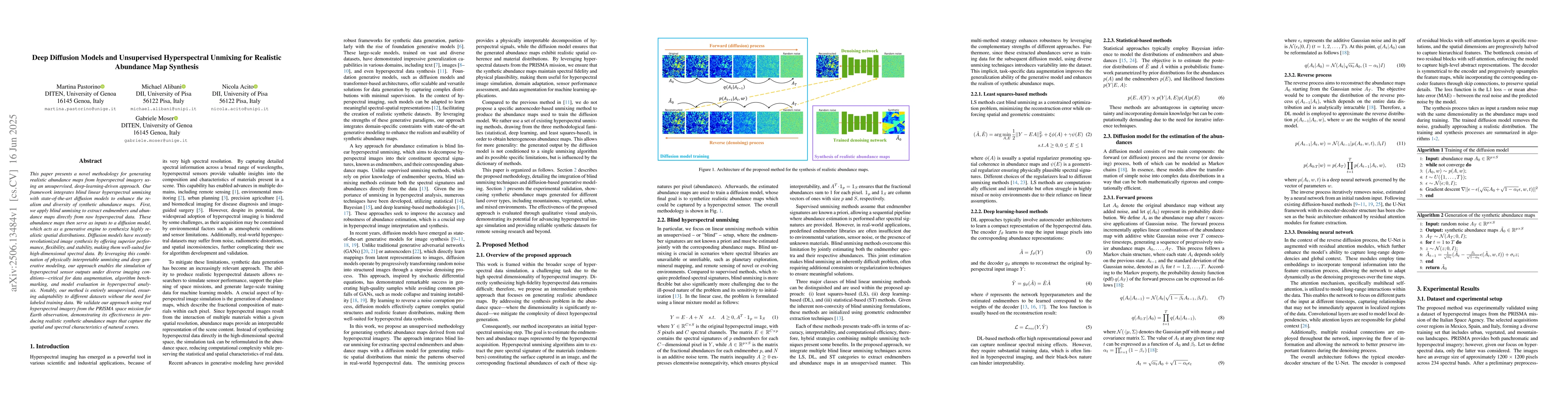 This paper presents a novel methodology for generating realistic abundance maps from hyperspectral imagery using an unsupervised, deep-learning-driven approach. Our framework integrates blind linear hyperspectral unmixing with state-of-the-art diffusion models to enhance the realism and diversity of synthetic abundance maps. First, we apply blind unmixing to extract endmembers and abundance maps directly from raw hyperspectral data. These abundance maps then serve as inputs to a diffusion model, which acts as a generative engine to synthesize highly realistic spatial distributions. Diffusion models have recently revolutionized image synthesis by offering superior performance, flexibility, and stability, making them well-suited for high-dimensional spectral data. By leveraging this combination of physically interpretable unmixing and deep generative modeling, our approach enables the simulation of hyperspectral sensor outputs under diverse imaging conditions--critical for data augmentation, algorithm benchmarking, and model evaluation in hyperspectral analysis. Notably, our method is entirely unsupervised, ensuring adaptability to different datasets without the need for labeled training data. We validate our approach using real hyperspectral imagery from the PRISMA space mission for Earth observation, demonstrating its effectiveness in producing realistic synthetic abundance maps that capture the spatial and spectral characteristics of natural scenes.