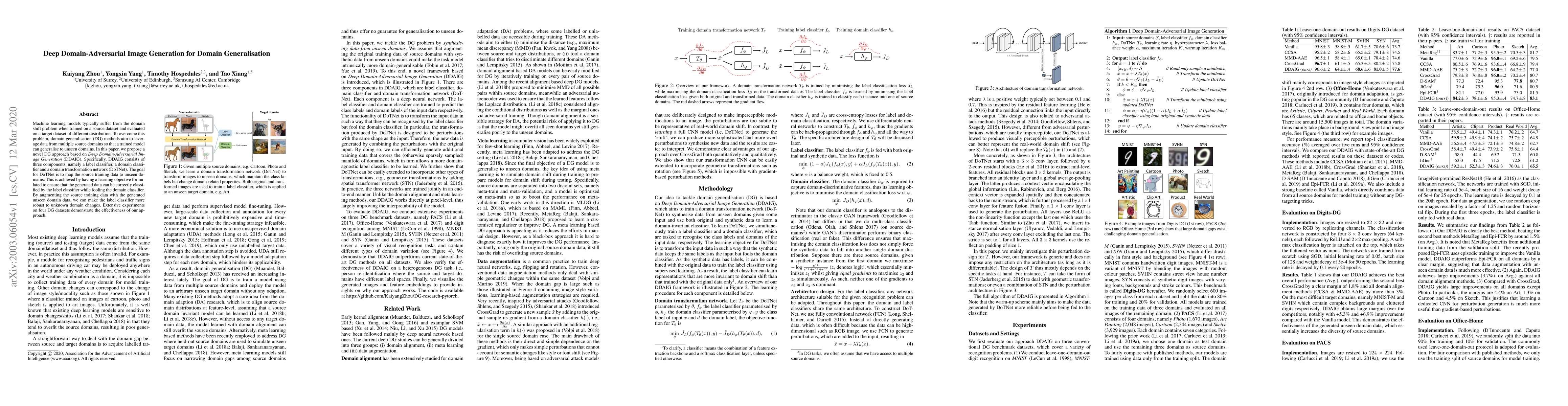 Machine learning models typically suffer from the domain shift problem when trained on a source dataset and evaluated on a target dataset of different distribution. To overcome this problem, domain generalisation (DG) methods aim to leverage data from multiple source domains so that a trained model can generalise to unseen domains. In this paper, we propose a novel DG approach based on \emph{Deep Domain-Adversarial Image Generation} (DDAIG). Specifically, DDAIG consists of three components, namely a label classifier, a domain classifier and a domain transformation network (DoTNet). The goal for DoTNet is to map the source training data to unseen domains. This is achieved by having a learning objective formulated to ensure that the generated data can be correctly classified by the label classifier while fooling the domain classifier. By augmenting the source training data with the generated unseen domain data, we can make the label classifier more robust to unknown domain changes. Extensive experiments on four DG datasets demonstrate the effectiveness of our approach.