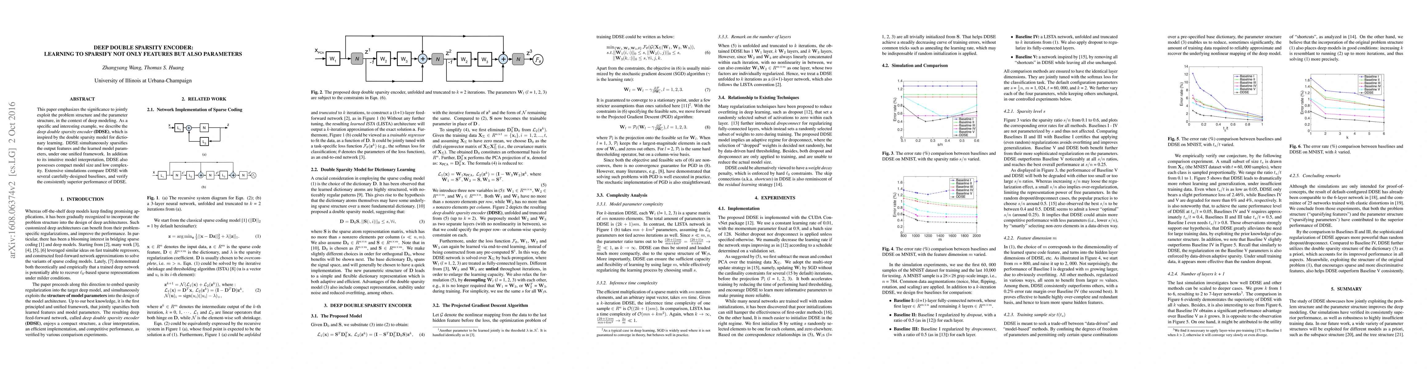 This paper emphasizes the significance to jointly exploit the problem structure and the parameter structure, in the context of deep modeling. As a specific and interesting example, we describe the deep double sparsity encoder (DDSE), which is inspired by the double sparsity model for dictionary learning. DDSE simultaneously sparsities the output features and the learned model parameters, under one unified framework. In addition to its intuitive model interpretation, DDSE also possesses compact model size and low complexity. Extensive simulations compare DDSE with several carefully-designed baselines, and verify the consistently superior performance of DDSE. We further apply DDSE to the novel application domain of brain encoding, with promising preliminary results achieved.