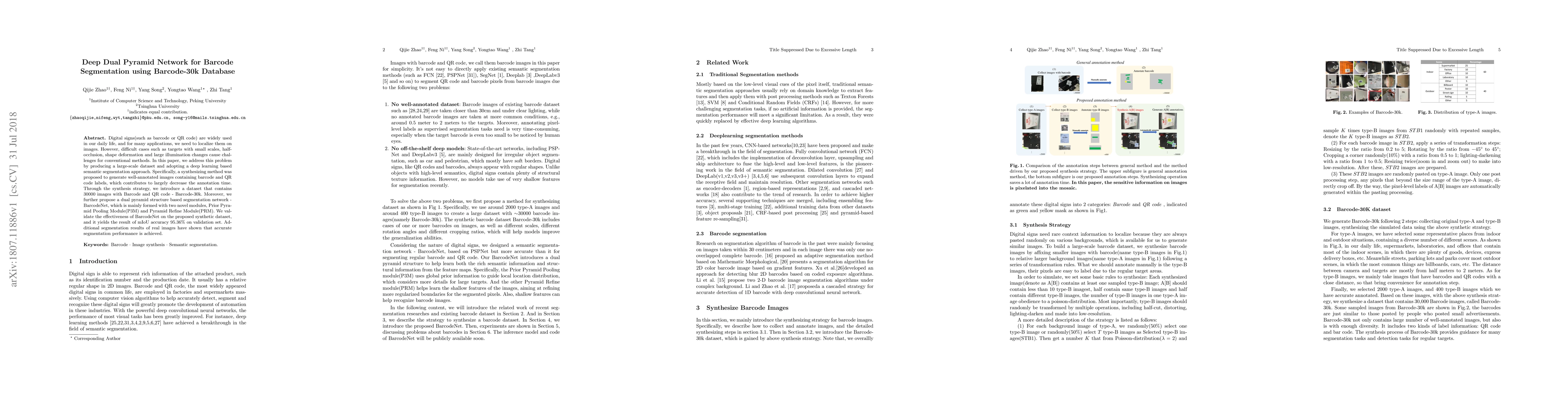 Digital signs(such as barcode or QR code) are widely used in our daily life, and for many applications, we need to localize them on images. However, difficult cases such as targets with small scales, half-occlusion, shape deformation and large illumination changes cause challenges for conventional methods. In this paper, we address this problem by producing a large-scale dataset and adopting a deep learning based semantic segmentation approach. Specifically, a synthesizing method was proposed to generate well-annotated images containing barcode and QR code labels, which contributes to largely decrease the annotation time. Through the synthesis strategy, we introduce a dataset that contains 30000 images with Barcode and QR code - Barcode-30k. Moreover, we further propose a dual pyramid structure based segmentation network - BarcodeNet, which is mainly formed with two novel modules, Prior Pyramid Pooling Module(P3M) and Pyramid Refine Module(PRM). We validate the effectiveness of BarcodeNet on the proposed synthetic dataset, and it yields the result of mIoU accuracy 95.36\% on validation set. Additional segmentation results of real images have shown that accurate segmentation performance is achieved.