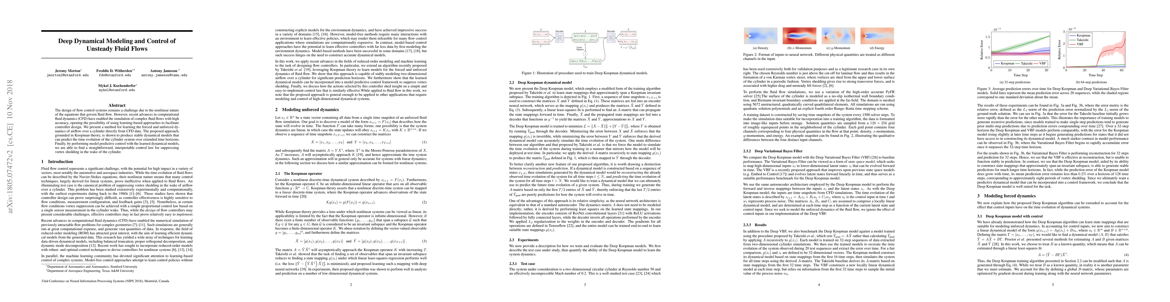 The design of flow control systems remains a challenge due to the nonlinear nature of the equations that govern fluid flow. However, recent advances in computational fluid dynamics (CFD) have enabled the simulation of complex fluid flows with high accuracy, opening the possibility of using learning-based approaches to facilitate controller design. We present a method for learning the forced and unforced dynamics of airflow over a cylinder directly from CFD data. The proposed approach, grounded in Koopman theory, is shown to produce stable dynamical models that can predict the time evolution of the cylinder system over extended time horizons. Finally, by performing model predictive control with the learned dynamical models, we are able to find a straightforward, interpretable control law for suppressing vortex shedding in the wake of the cylinder.