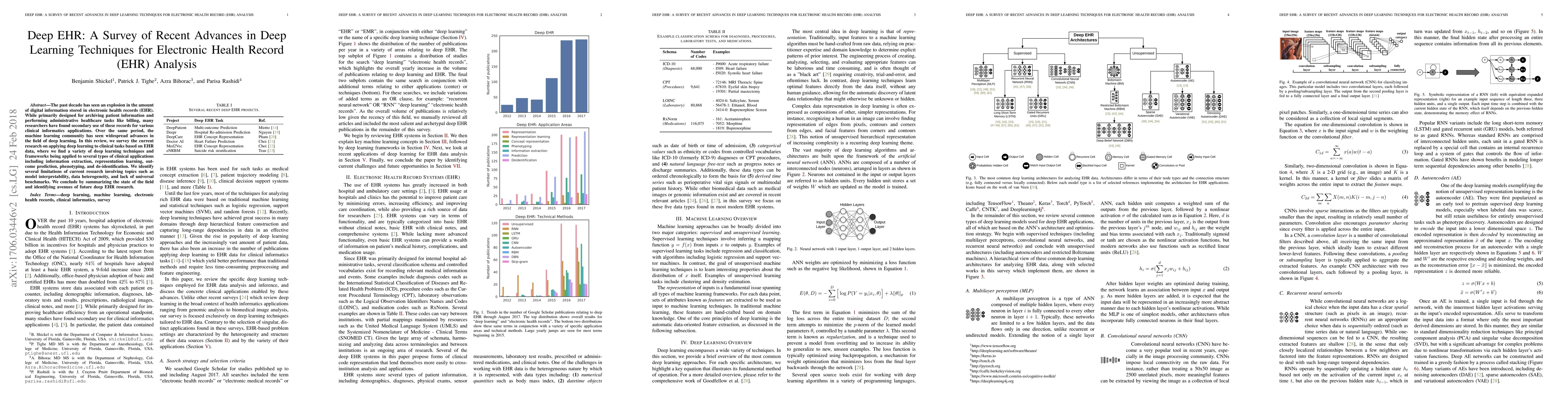 This paper surveys recent advances in deep learning techniques applied to electronic health records (EHR), reviewing system architectures, technical aspects, and clinical applications while identifying current limitations and proposing future research directions.
