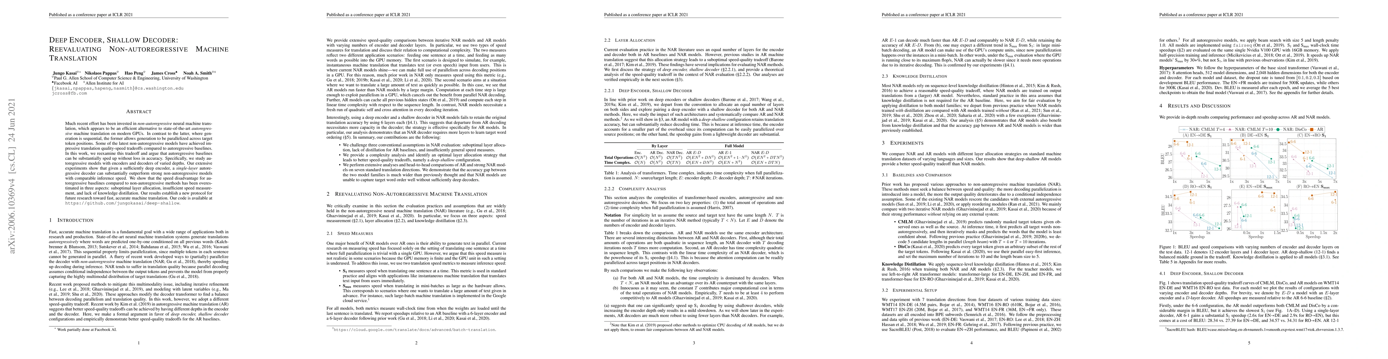 This paper reevaluates non-autoregressive machine translation, demonstrating that autoregressive models with deep encoders and shallow decoders can outperform non-autoregressive models while maintaining comparable speed. The study identifies and addresses three key factors contributing to the perceived speed disadvantage of autoregressive models.