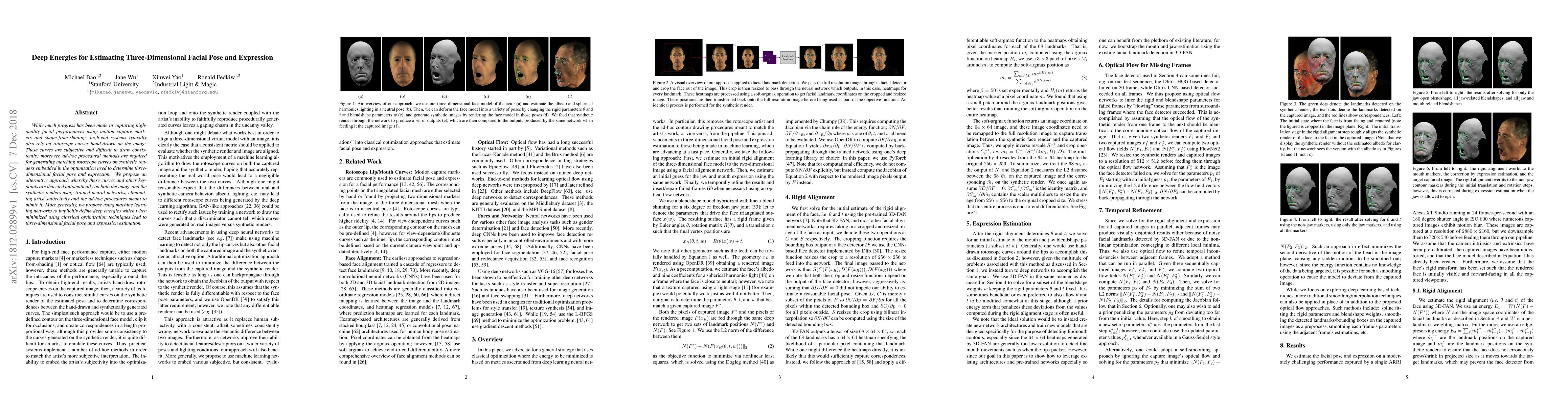 While much progress has been made in capturing high-quality facial performances using motion capture markers and shape-from-shading, high-end systems typically also rely on rotoscope curves hand-drawn on the image. These curves are subjective and difficult to draw consistently; moreover, ad-hoc procedural methods are required for generating matching rotoscope curves on synthetic renders embedded in the optimization used to determine three-dimensional facial pose and expression. We propose an alternative approach whereby these curves and other keypoints are detected automatically on both the image and the synthetic renders using trained neural networks, eliminating artist subjectivity and the ad-hoc procedures meant to mimic it. More generally, we propose using machine learning networks to implicitly define deep energies which when minimized using classical optimization techniques lead to three-dimensional facial pose and expression estimation.