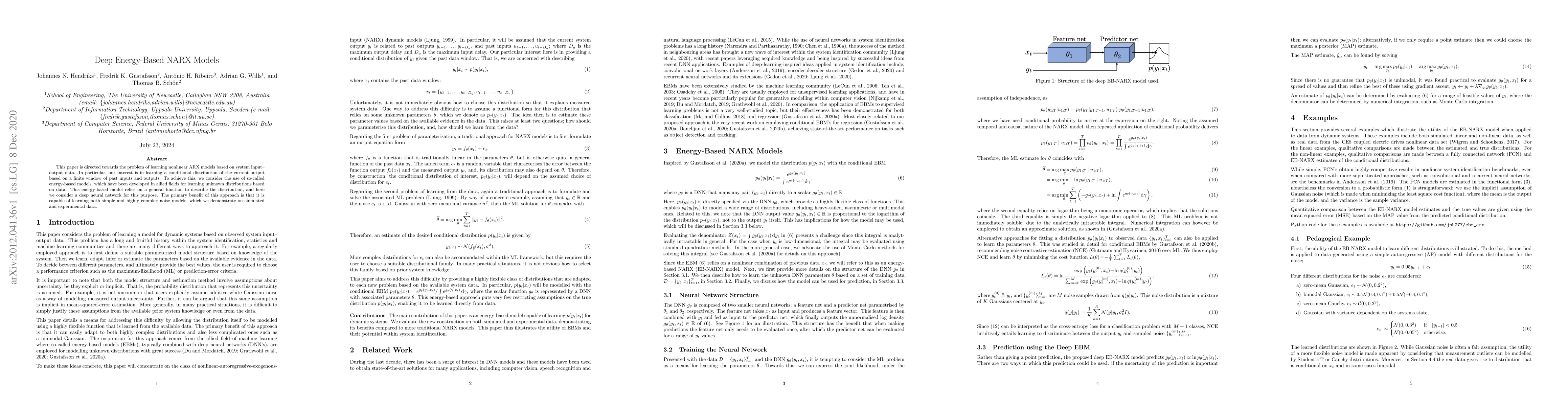 This paper is directed towards the problem of learning nonlinear ARX models based on system input--output data. In particular, our interest is in learning a conditional distribution of the current output based on a finite window of past inputs and outputs. To achieve this, we consider the use of so-called energy-based models, which have been developed in allied fields for learning unknown distributions based on data. This energy-based model relies on a general function to describe the distribution, and here we consider a deep neural network for this purpose. The primary benefit of this approach is that it is capable of learning both simple and highly complex noise models, which we demonstrate on simulated and experimental data.
