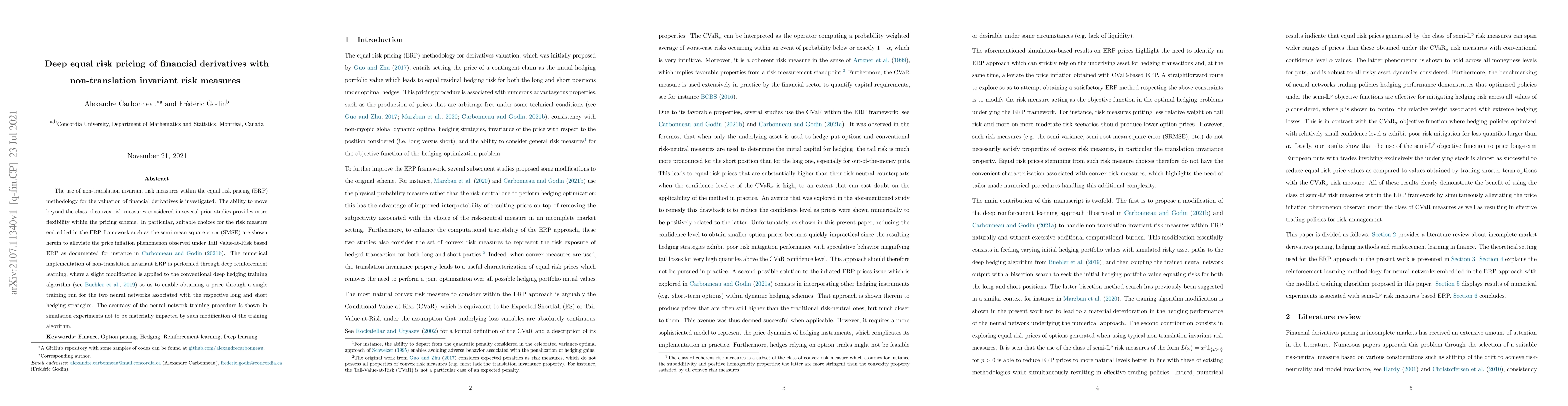 This paper explores the application of non-translation invariant risk measures in the equal risk pricing (ERP) framework for financial derivatives, offering flexibility beyond convex measures. It demonstrates that using measures like semi-mean-square-error (SMSE) can mitigate price inflation issues, and employs deep reinforcement learning for numerical implementation, showing no significant impact on training accuracy.