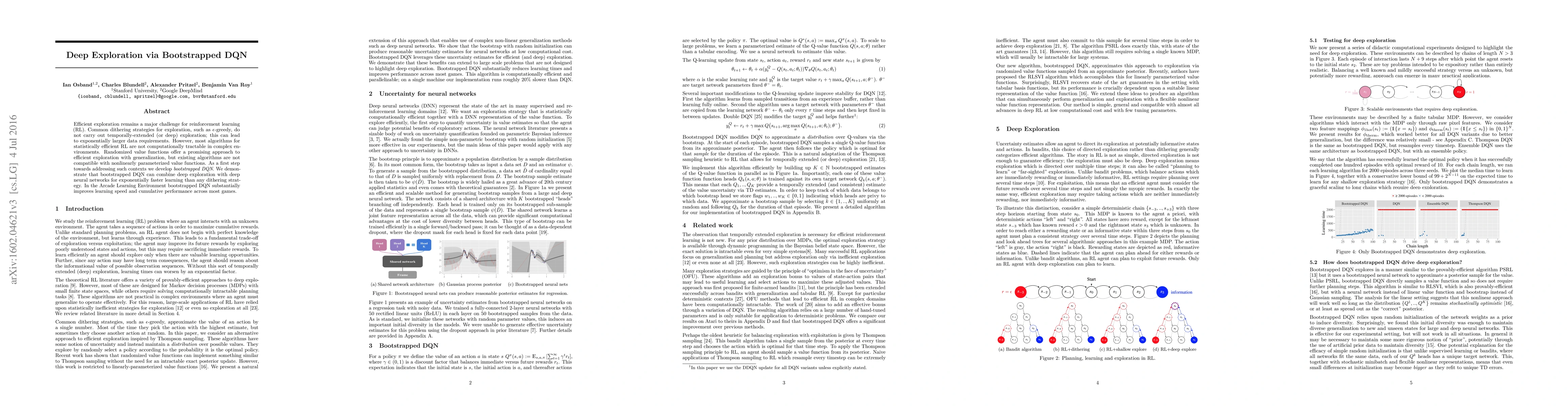 The paper proposes Bootstrapped DQN, an algorithm that uses randomized value functions for computationally and statistically efficient exploration in complex environments. It employs a bootstrapped approach with K independent value functions, each trained on different subsets of data, to enable deep exploration.
