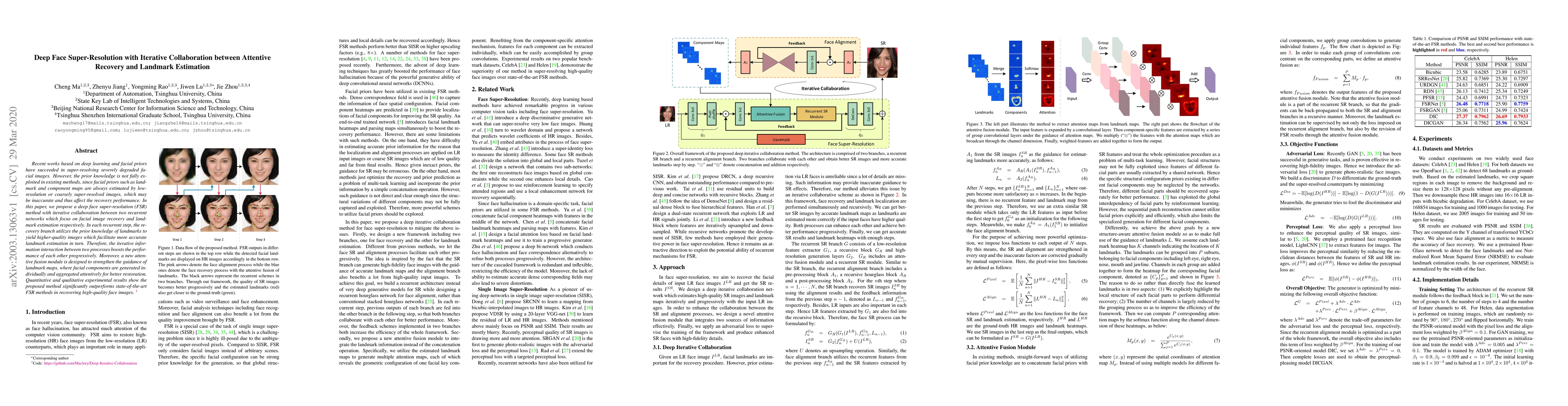 This paper proposes a deep face super-resolution method using iterative collaboration between attentive recovery and landmark estimation through two recurrent networks. The method enhances image recovery and landmark accuracy through mutual information interaction, leading to superior performance compared to existing methods.