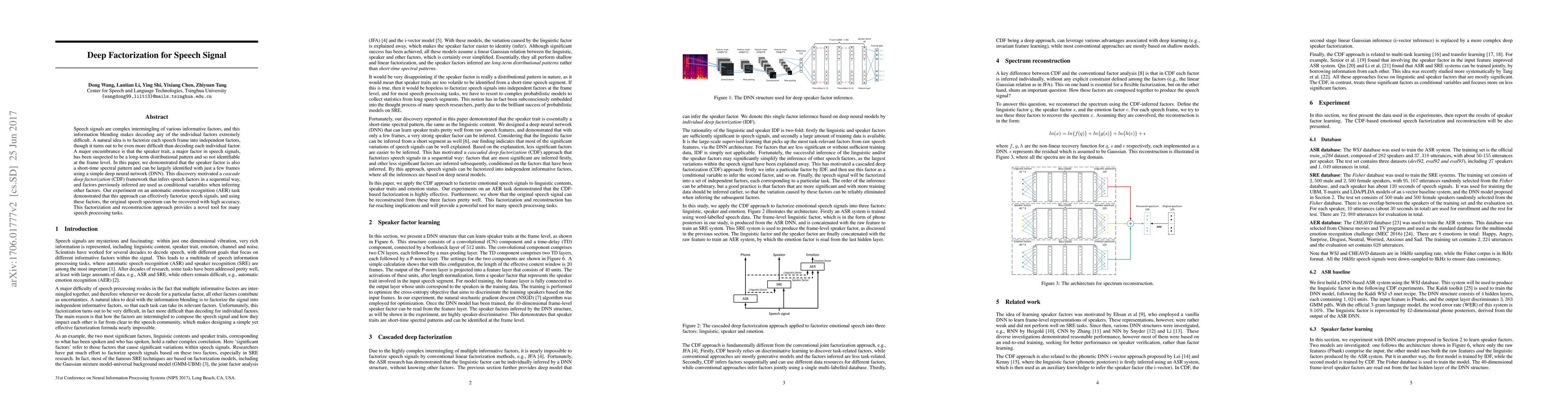 This work is novel in its use of cascade deep factorization and deep neural networks to factorize speech signals, which has not been explored before