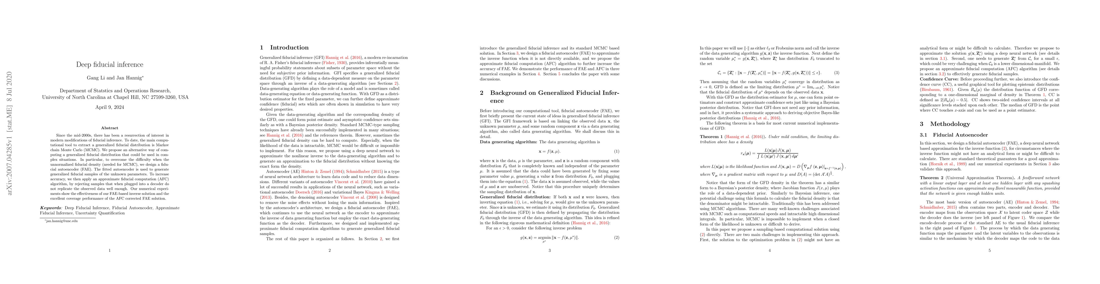 This paper proposes a novel fiducial autoencoder (FAE) to compute a generalized fiducial distribution, offering an alternative to Markov chain Monte Carlo (MCMC). The FAE generates fiducial samples, which are then refined using an approximate fiducial computation (AFC) algorithm to improve accuracy and coverage performance.