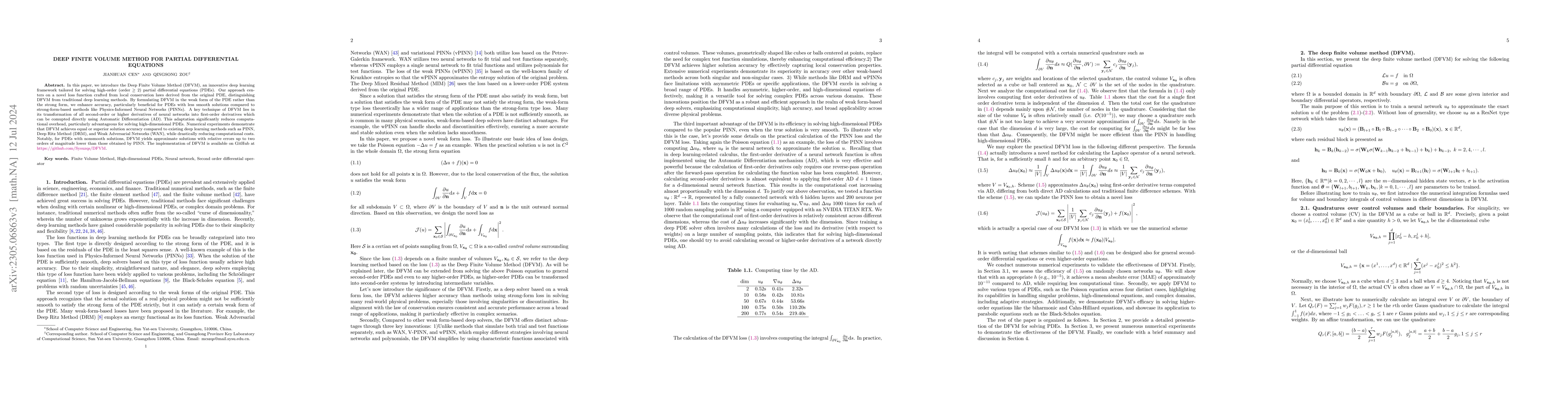The paper proposes the deep finite volume method (DFVM) for high-order PDEs, utilizing a weak form and local conservation properties over control volumes to achieve higher accuracy and lower computational costs compared to strong-form methods like PINN. Numerical experiments demonstrate DFVM's superior accuracy and efficiency for PDEs with nonsmooth solutions.