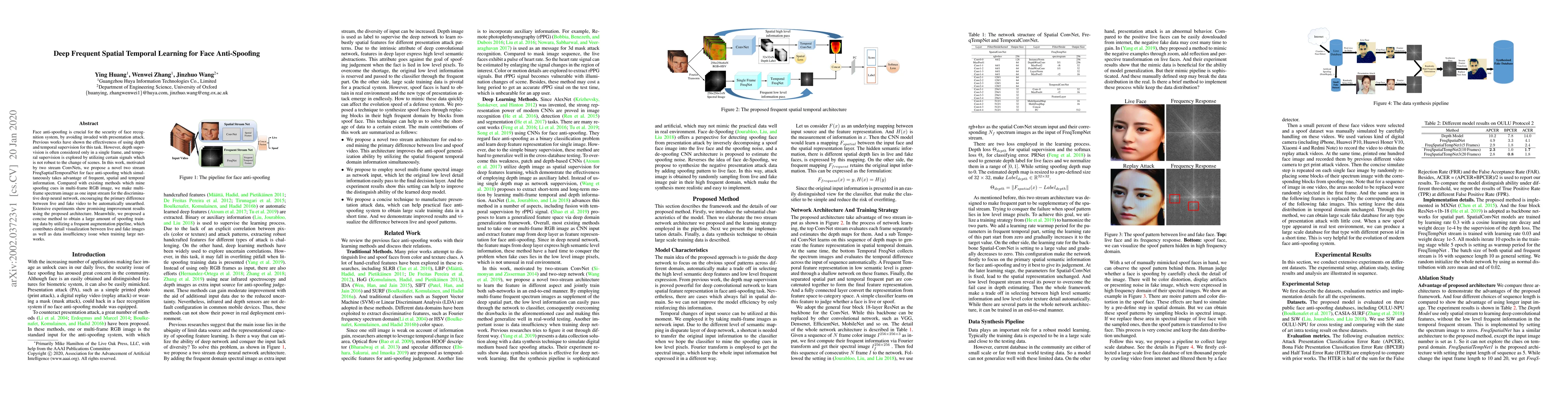 This paper proposes a novel two-stream FreqSaptialTemporalNet for face anti-spoofing, leveraging both frequent spatial and temporal information from multi-frame spectrum images. The method aims to improve upon existing techniques by addressing data insufficiency and enhancing robustness through frequent augmentation.