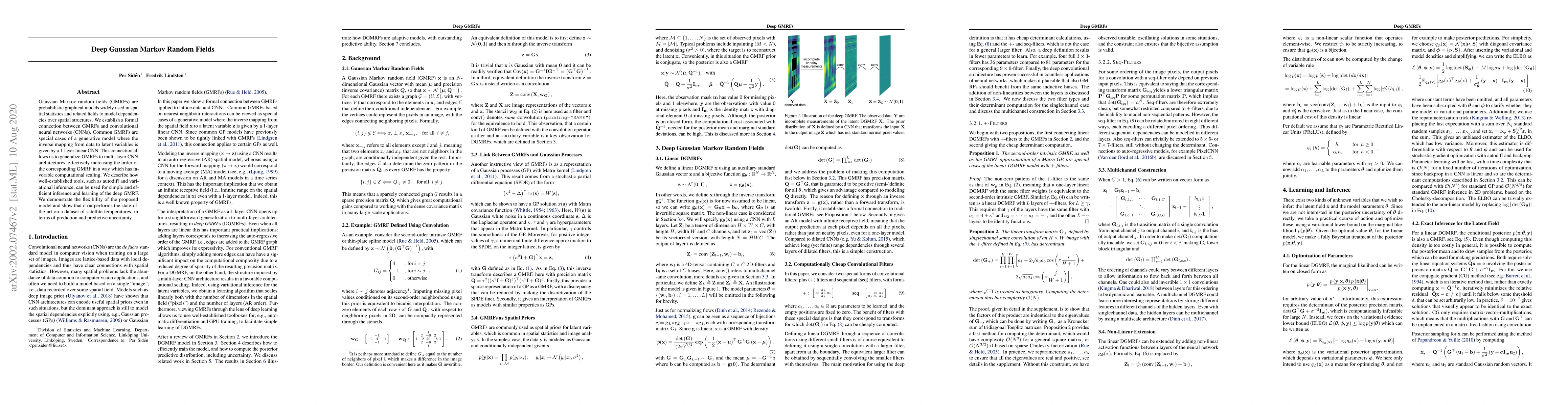 This paper establishes a connection between Gaussian Markov random fields (GMRFs) and convolutional neural networks (CNNs), allowing GMRFs to be generalized to deep architectures. The proposed deep GMRF model leverages autodiff and variational inference for efficient learning, demonstrating superior performance on satellite temperature prediction.