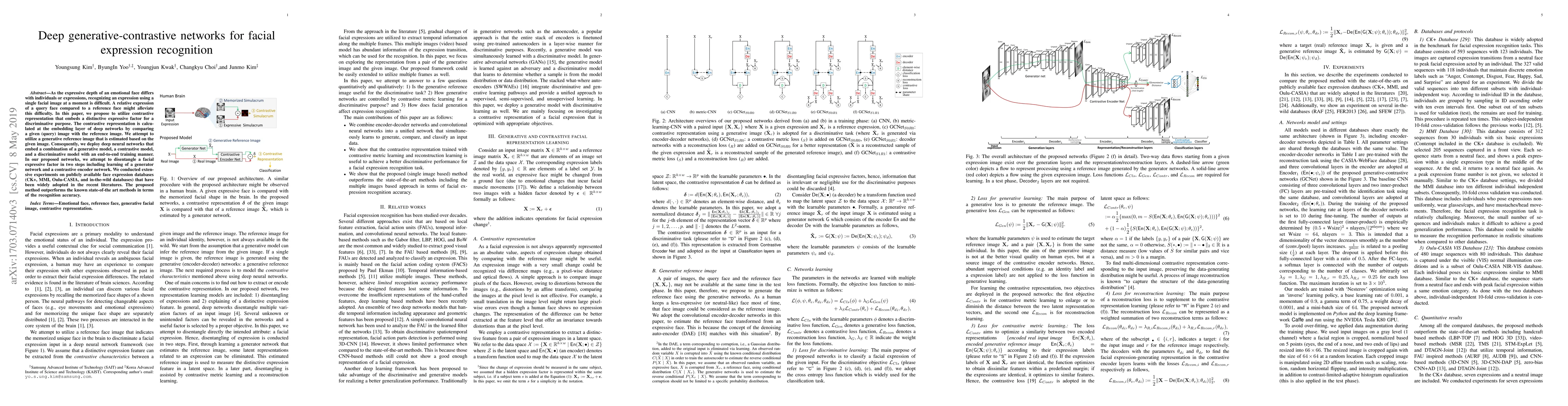This paper proposes deep generative-contrastive networks for facial expression recognition, utilizing a generative reference image and contrastive representation to disentangle expressive factors. The method outperforms existing state-of-the-art techniques in recognition accuracy across multiple databases.