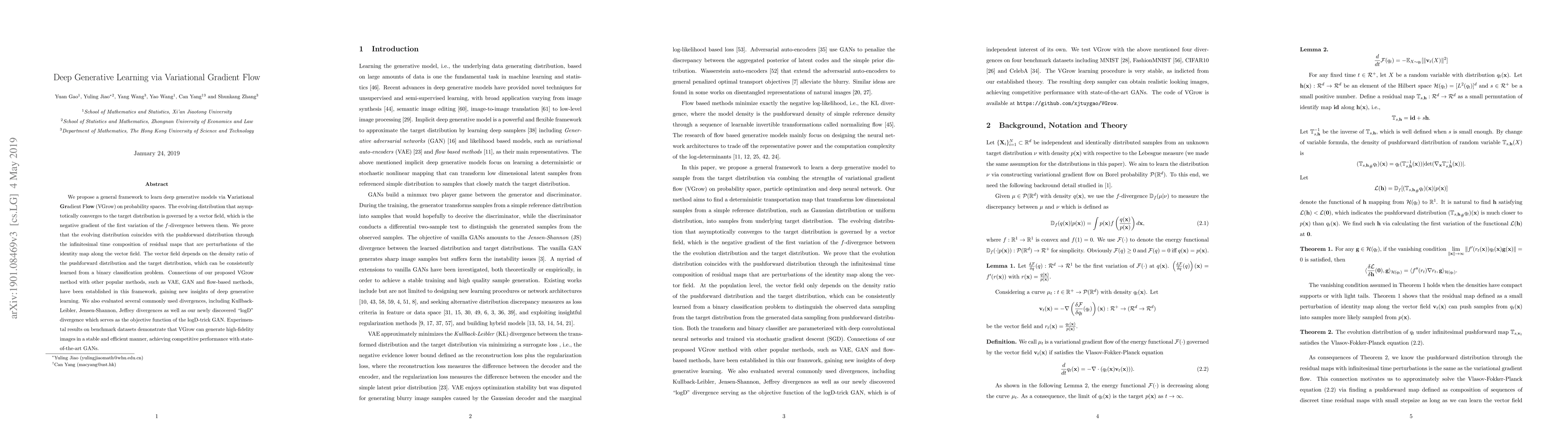 This paper introduces VGrow, a novel variational gradient flow framework for learning deep generative models, which leverages a vector field to evolve distributions towards the target distribution. The method establishes connections with VAE, GAN, and flow-based models, and demonstrates competitive performance in generating high-fidelity images on benchmark datasets.