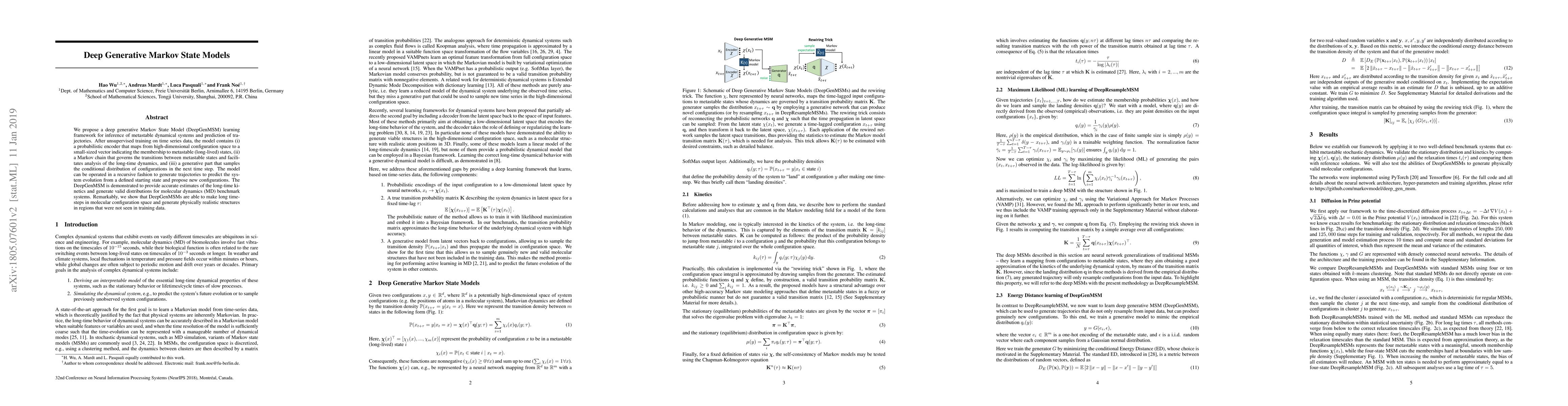 A new deep learning model called DeepGenMSM predicts molecular dynamics by generating trajectories from a starting state, offering accurate estimates of long-time kinetics and physically realistic structures.