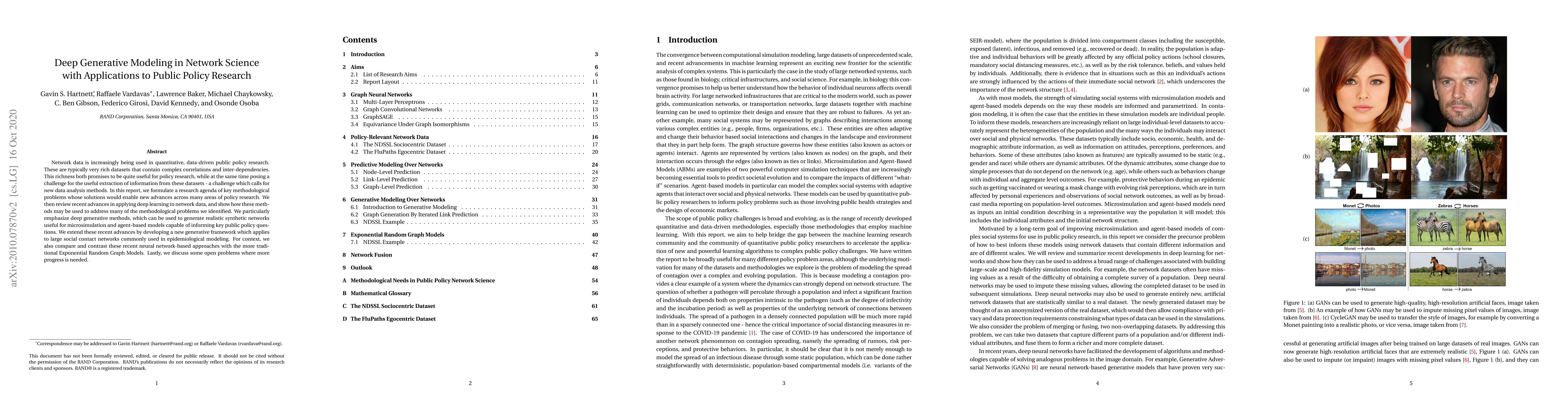 Researchers developed a new framework for generating realistic synthetic networks using deep generative models, enabling better analysis of large social contact networks in public policy research. This approach can inform key policy questions and address challenges in extracting useful information from rich network datasets.