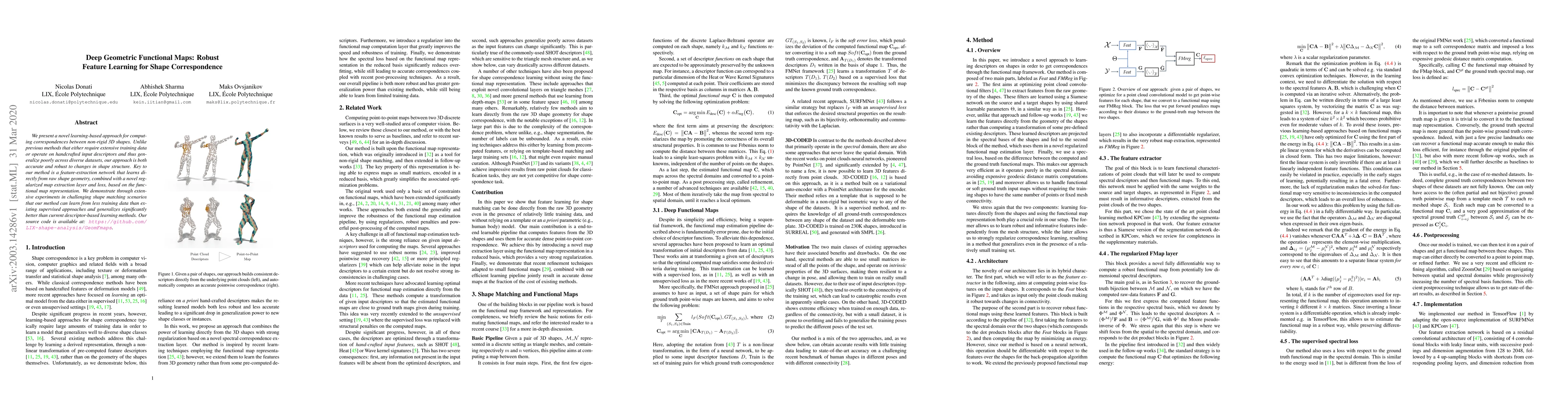 A new approach for computing shape correspondences in 3D shapes is presented, demonstrating robust feature learning and generalization across diverse datasets with less training data than existing methods.